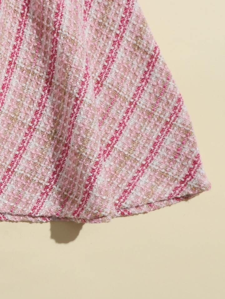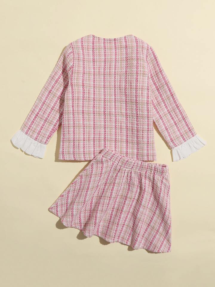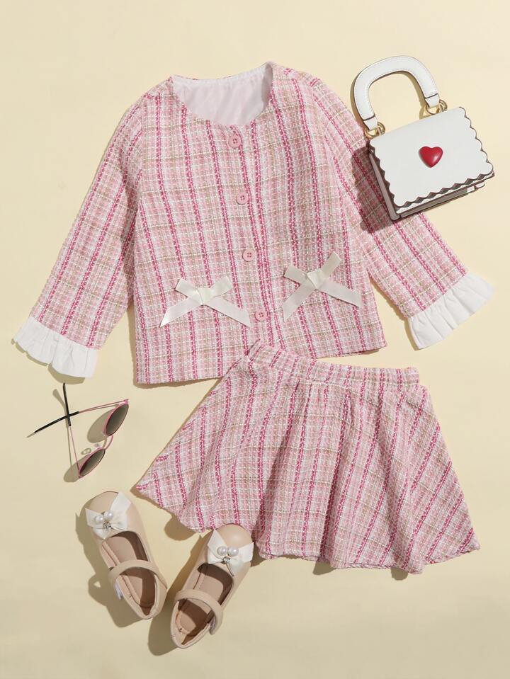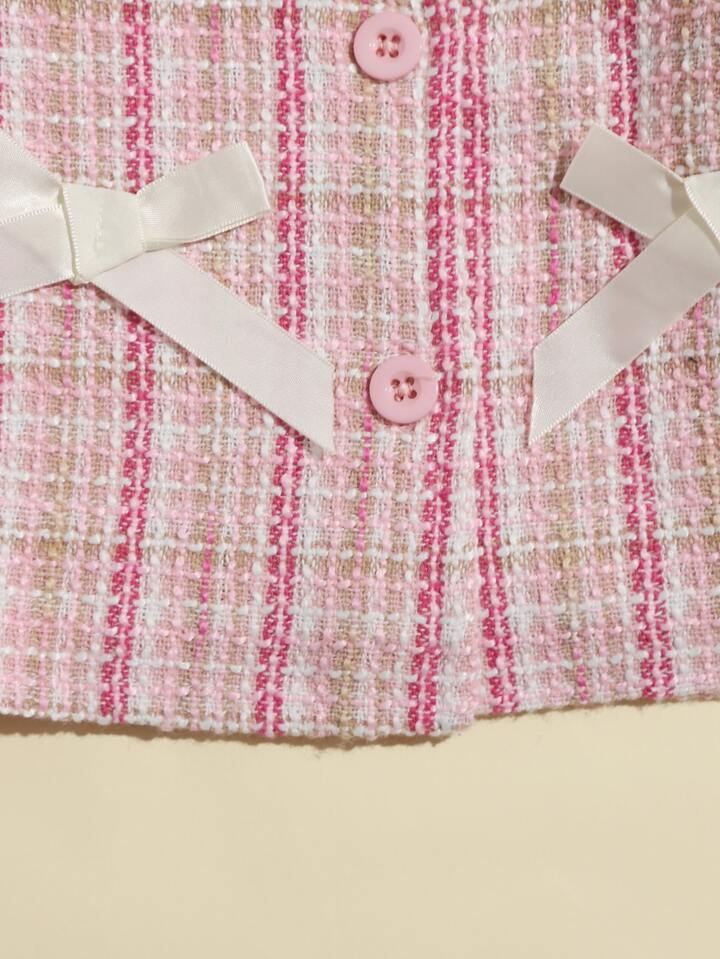 Tweed Jacke mit Karo Muster, Schleife vorne und Rock