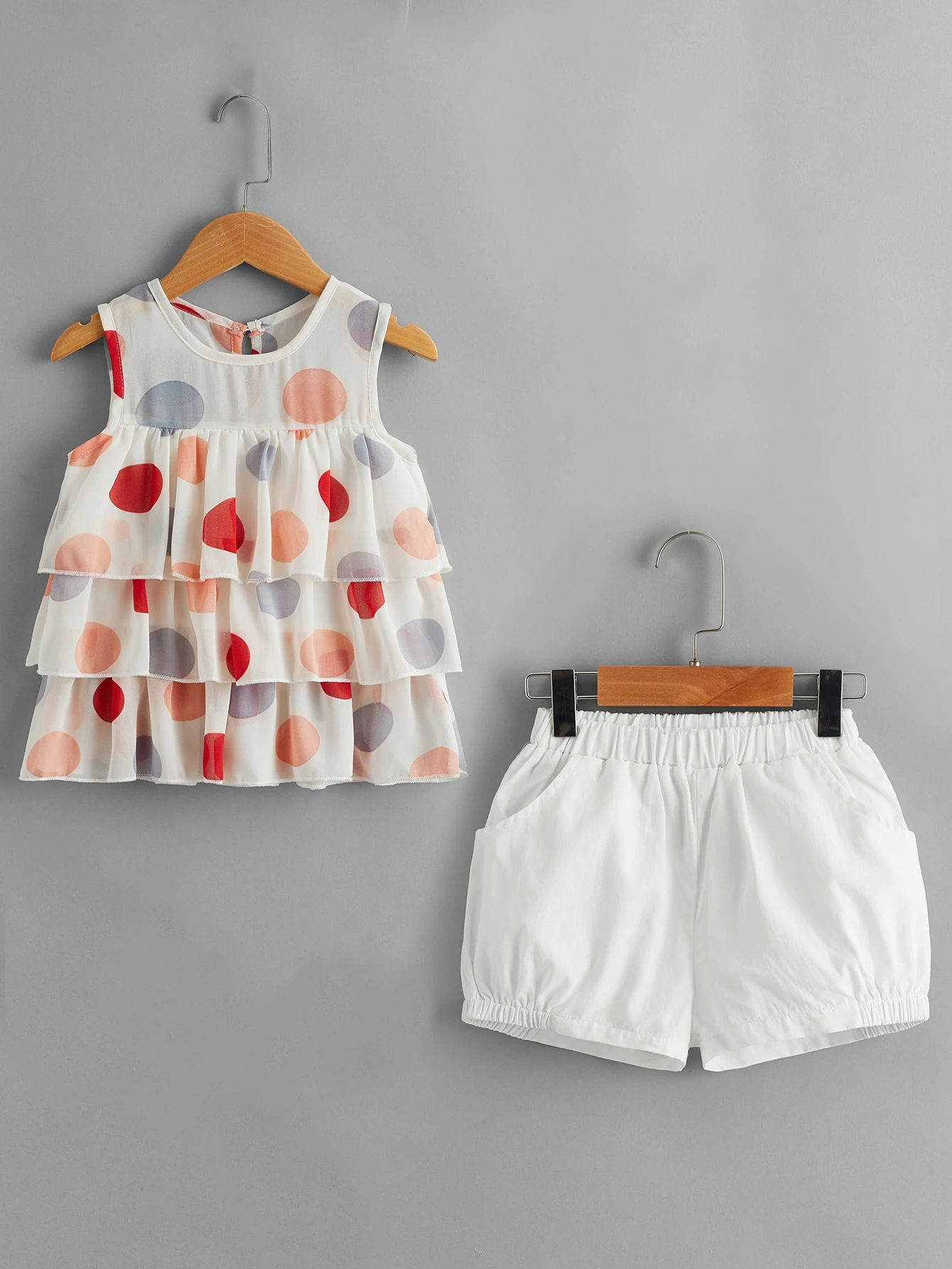 Mehrschichtiges Top mit Punkten Muster & Shorts