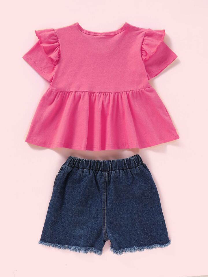Einfarbiges Babydoll T-Shirt und Denim Shorts mit Sonnenblumen Muster