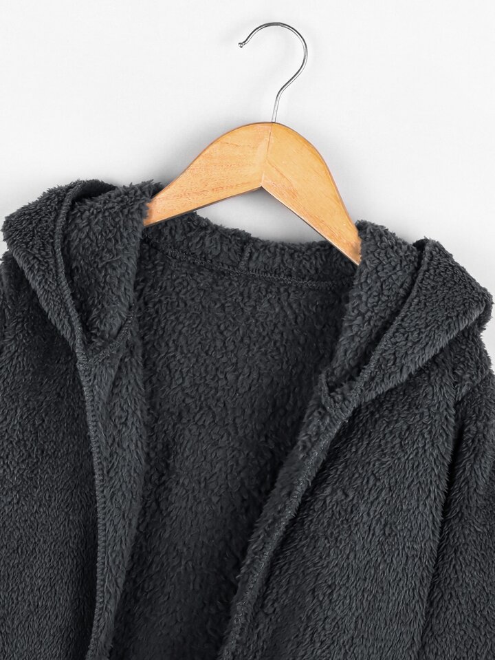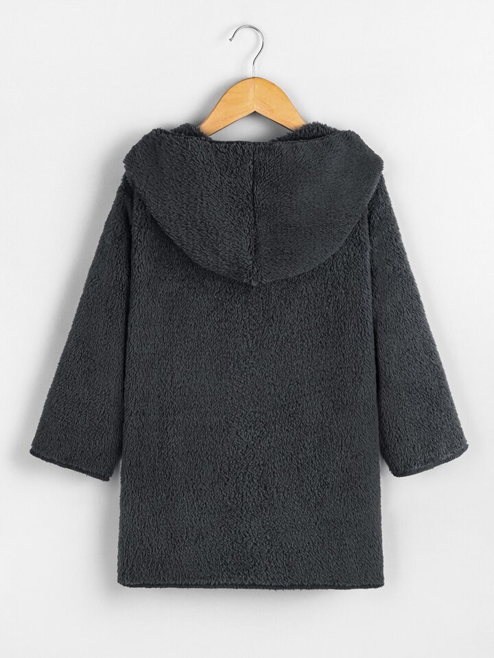 Einfarbiger Teddy Mantel mit Kapuze