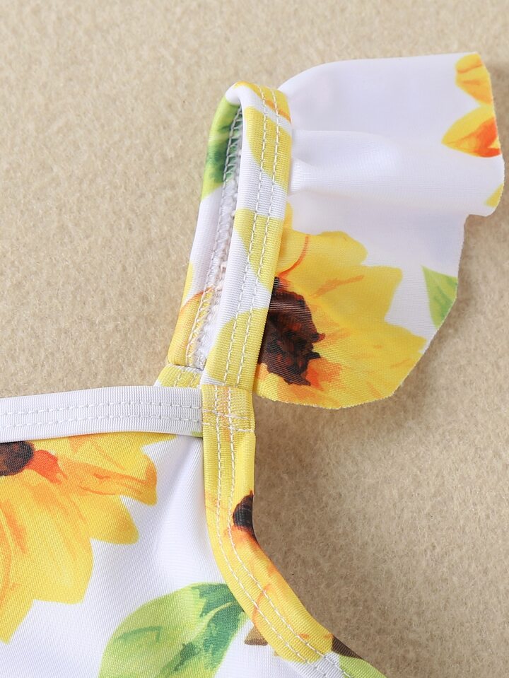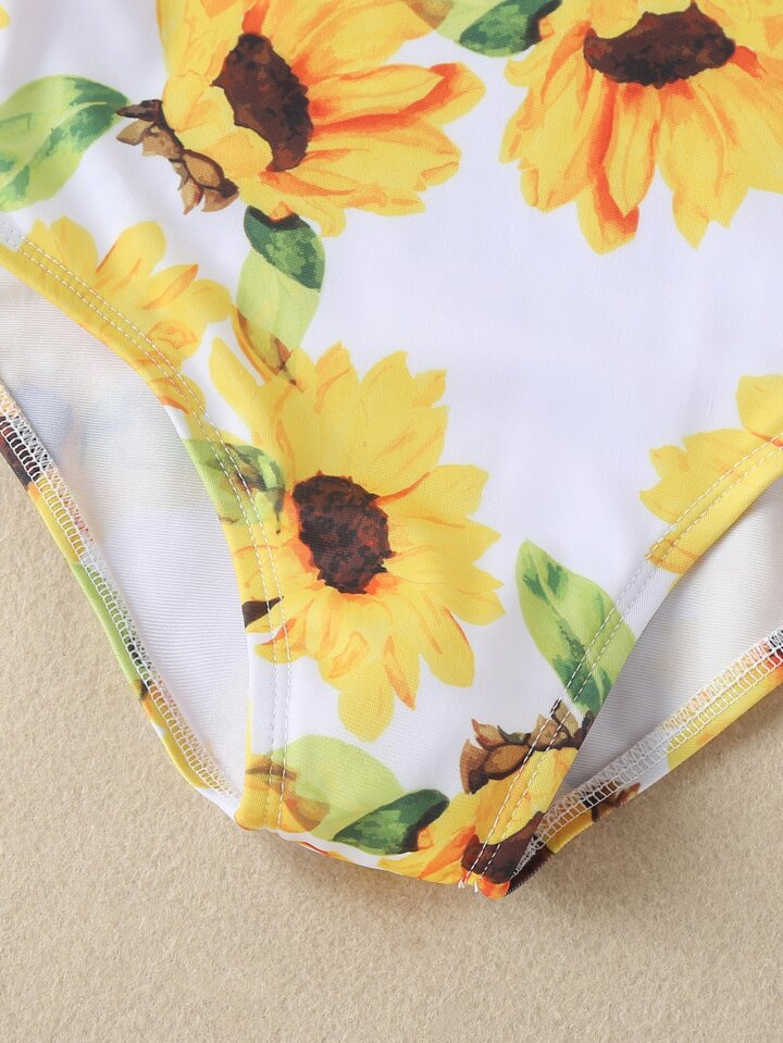 Badeanzug mit Sonnenblumen Muster und Rüschen