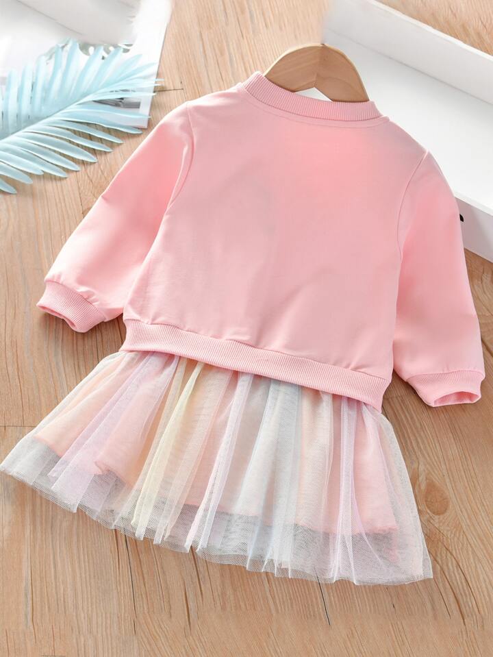 Kleid mit Einhorn Muster und Netzstoff Einsatz