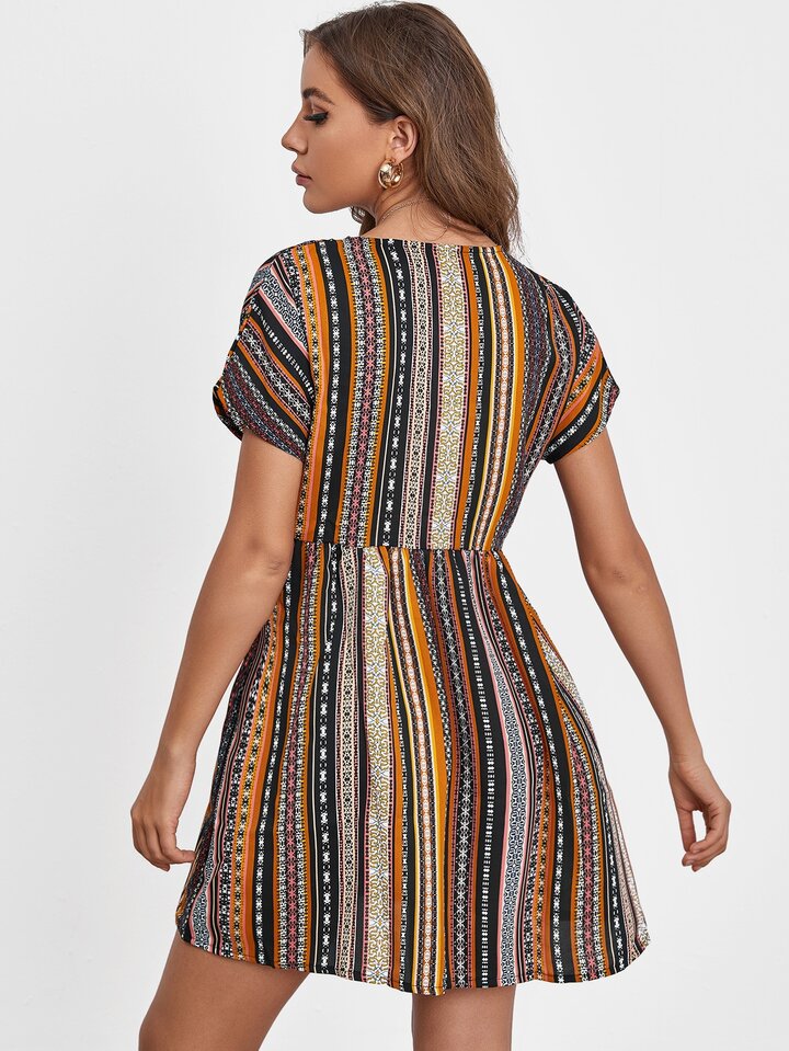 Kleid mit Stamm Muster und Tasche vorn