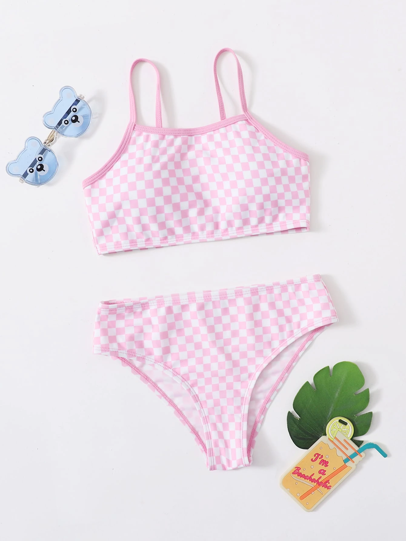 Tween-Mädchen Karierter Bikini Set für den Sommer Strand