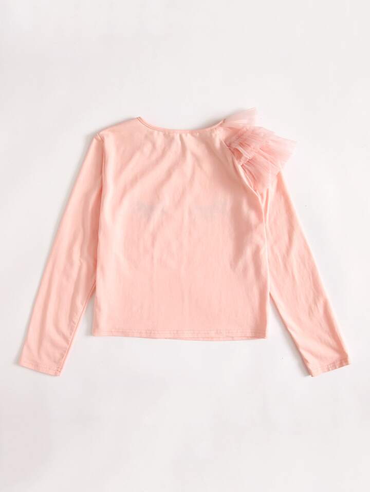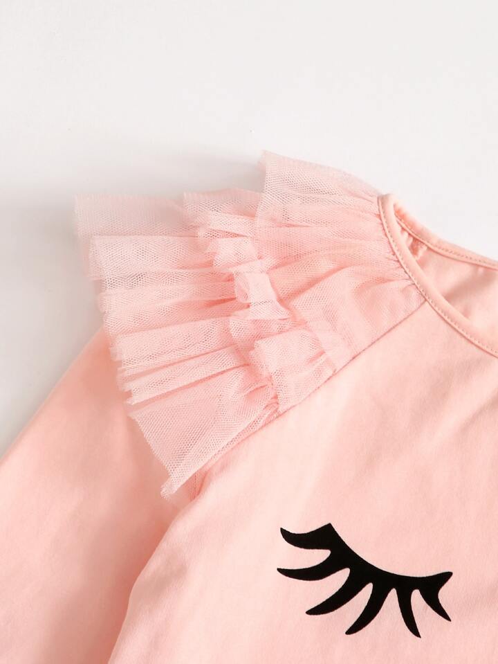 Teenager Mädchen T-Shirt mit mehrlagigem Netzstoff und Rüschenbesatz im Wimpern Muster