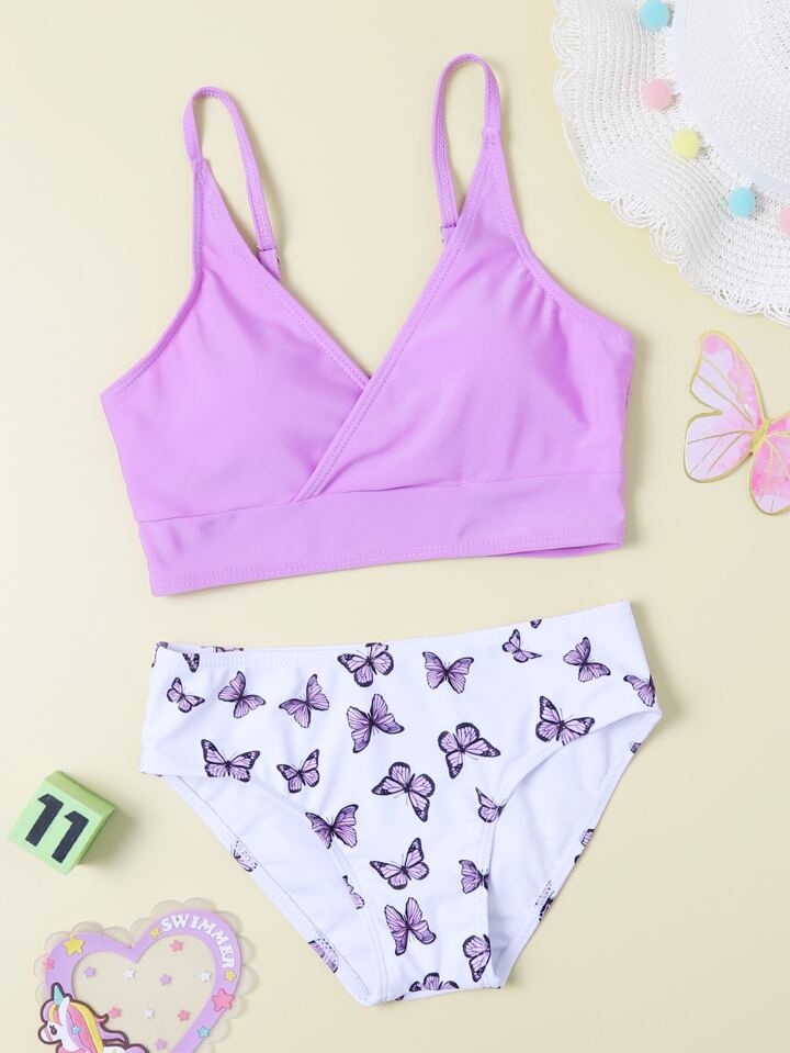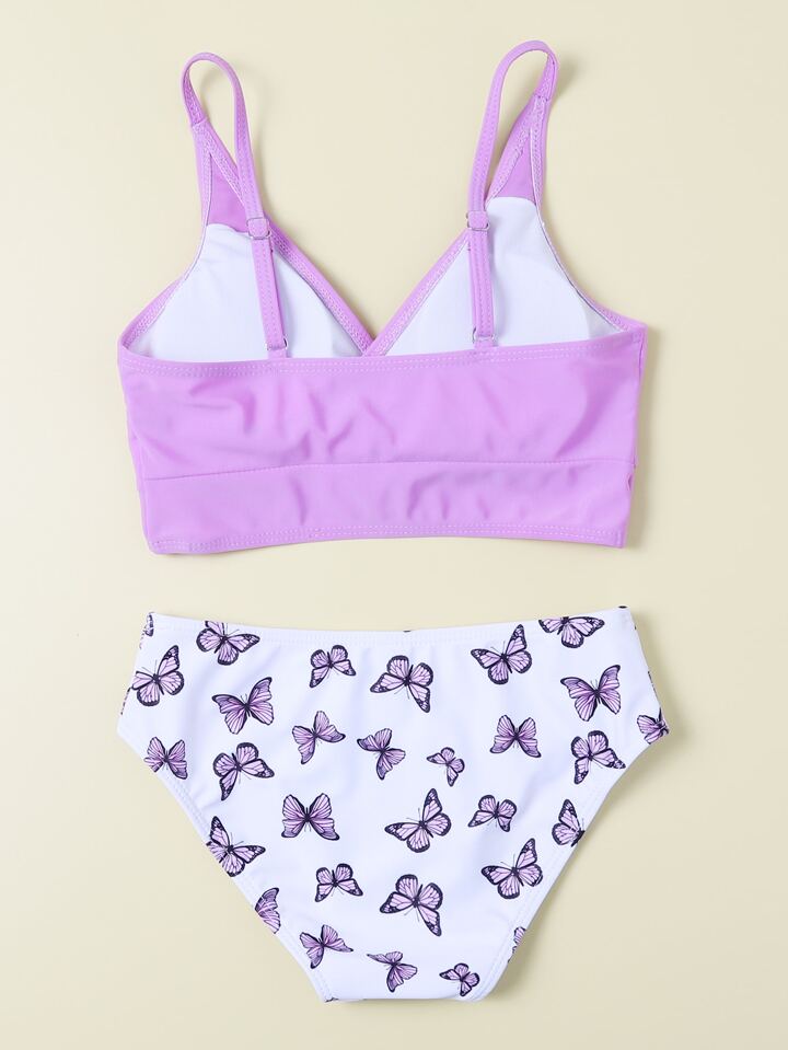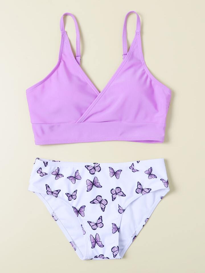 Mädchen Pre-Teen zufälliger Schmetterling V-Ausschnitt Bikini Set Sommer Strand