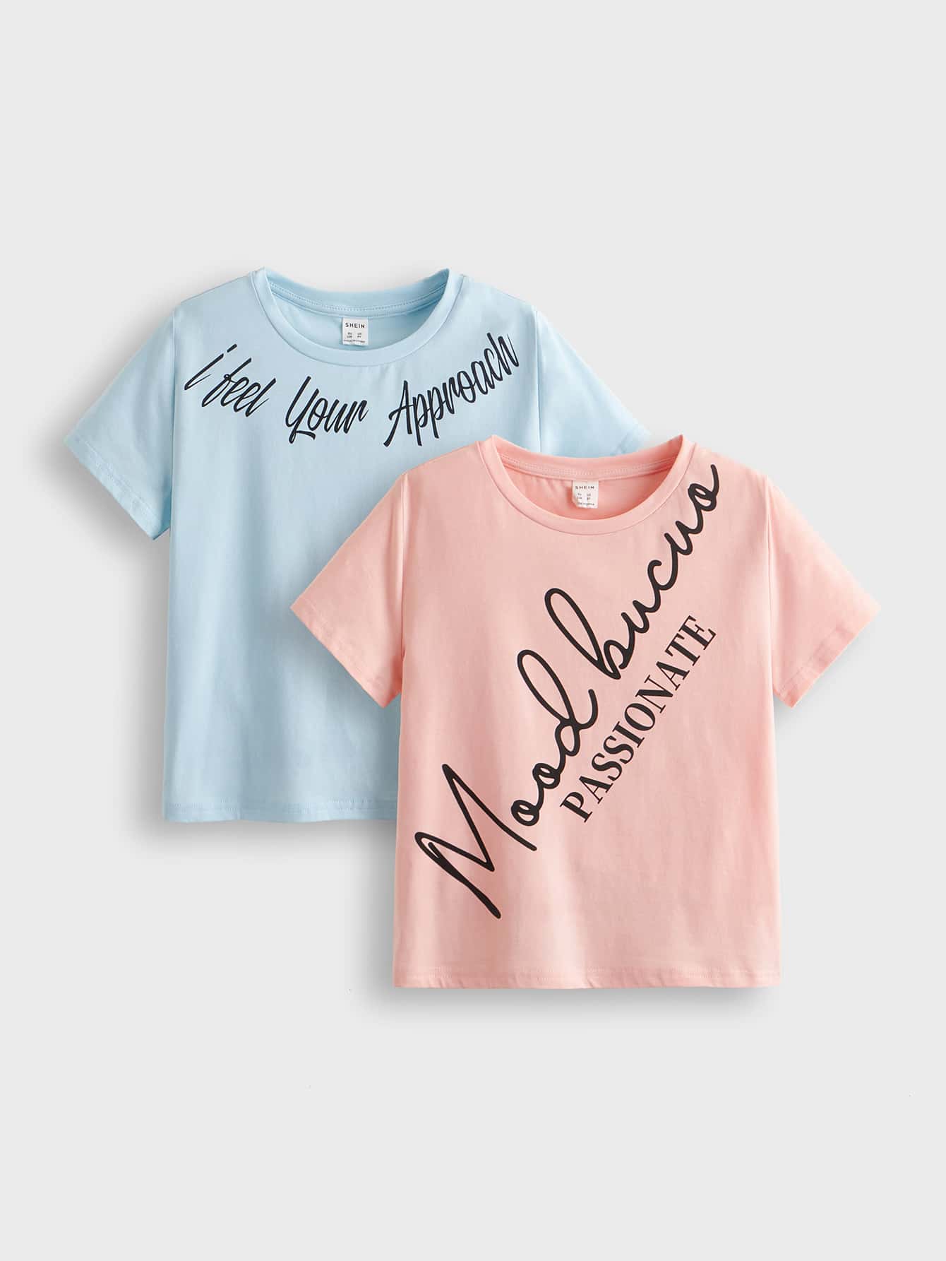 Tween Mädchen 2 Pack bedruckte Logoshirts