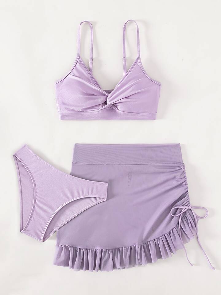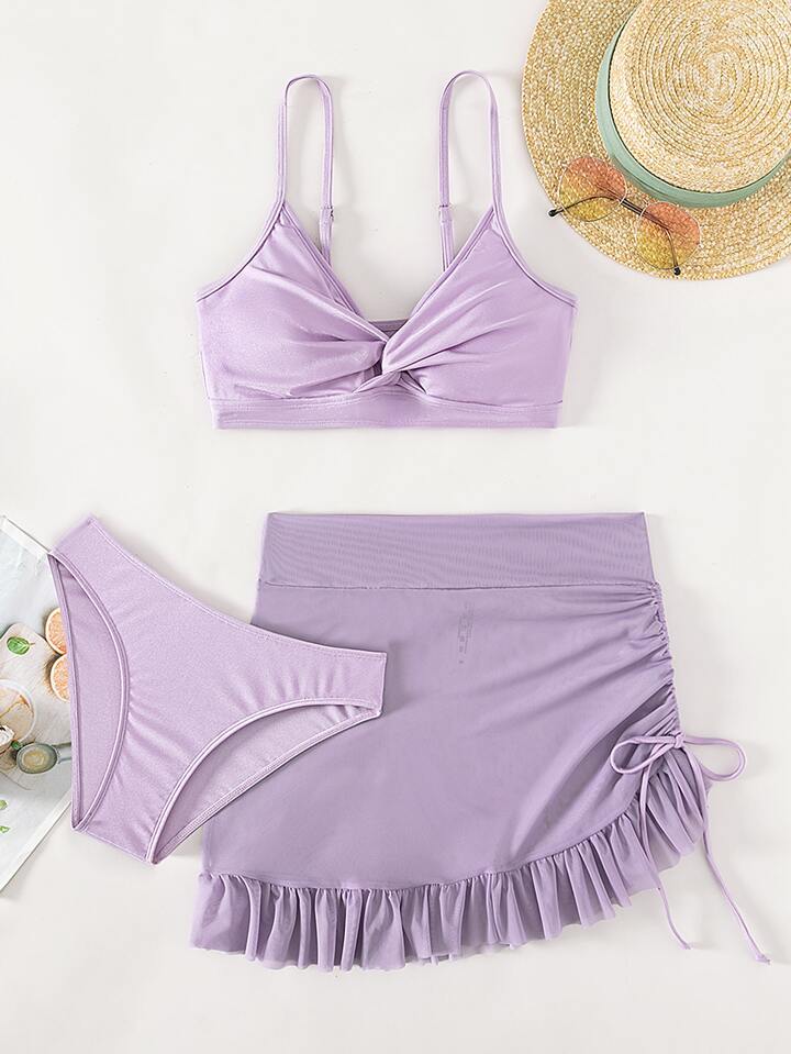 Sommer Strand Bikini-Set mit verdrehter Vorderseite und Strandrock