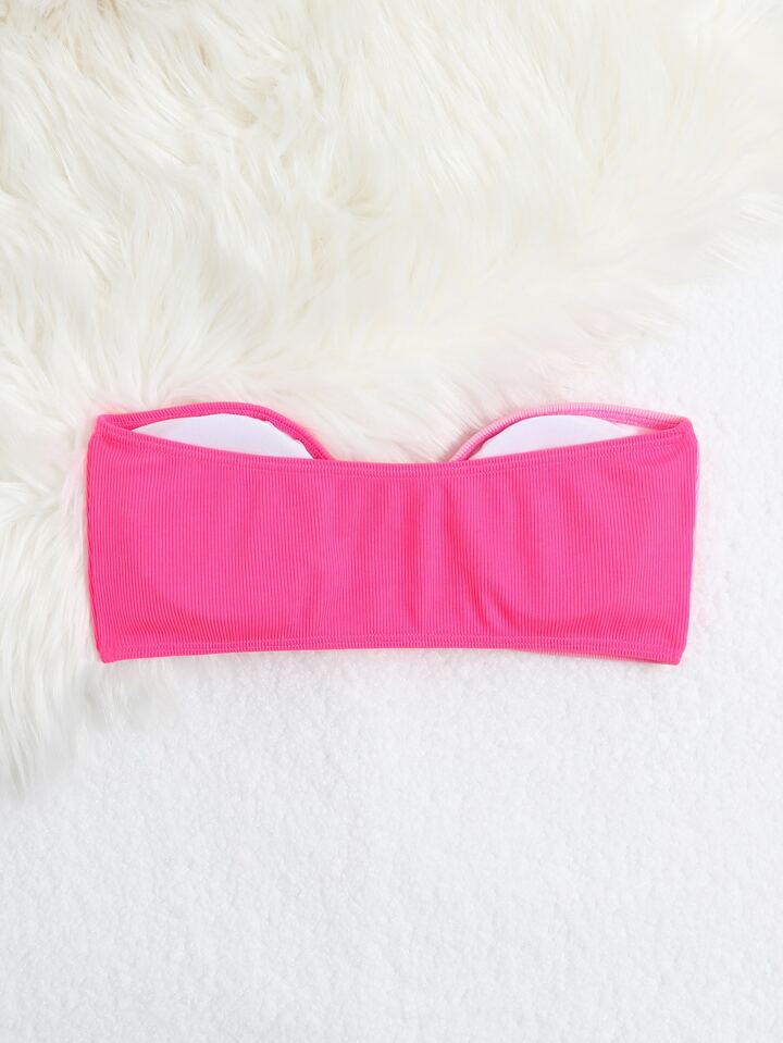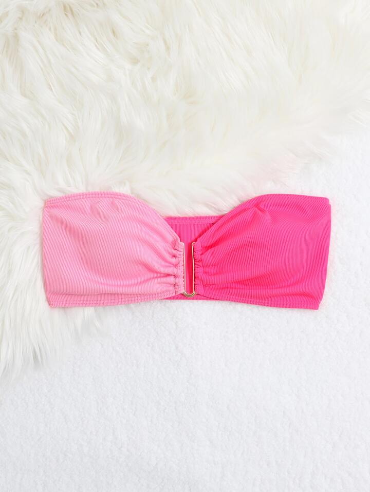 Zweifarbiger geraffte Bandeau Bikini Oberteil, für Sommerstrand Urlaub