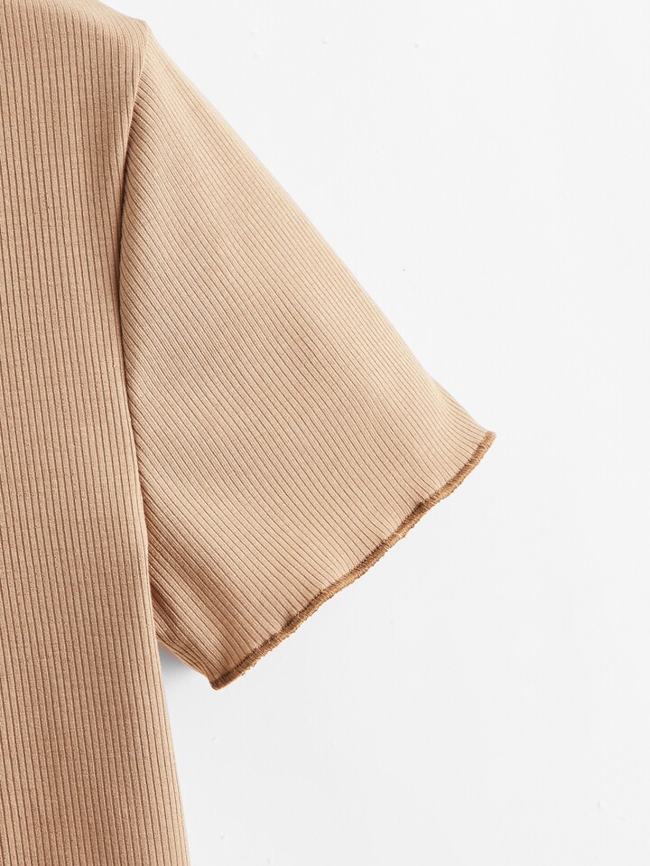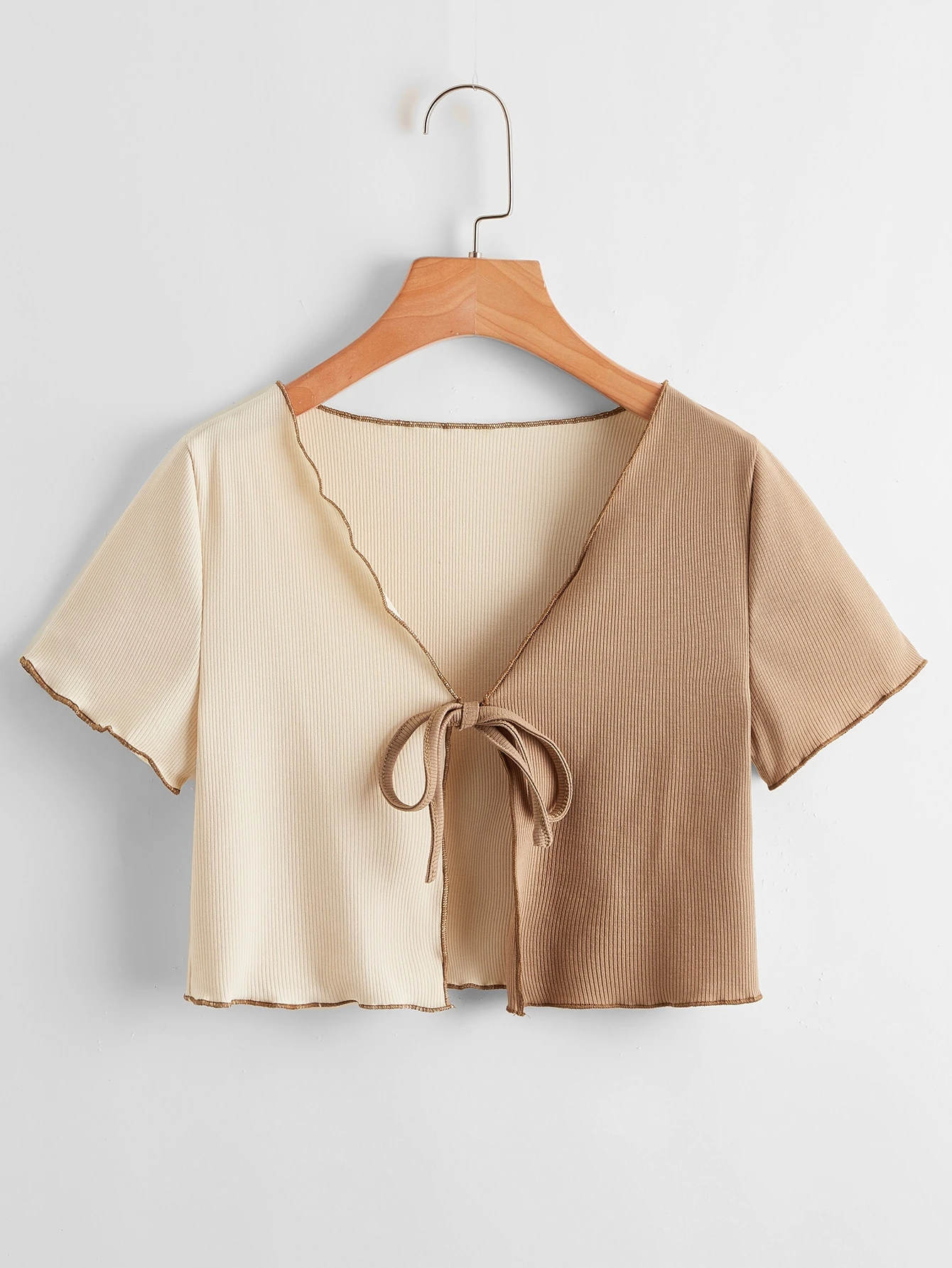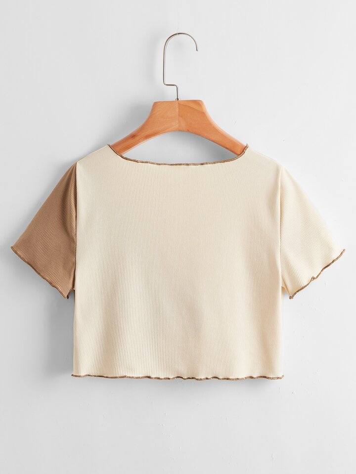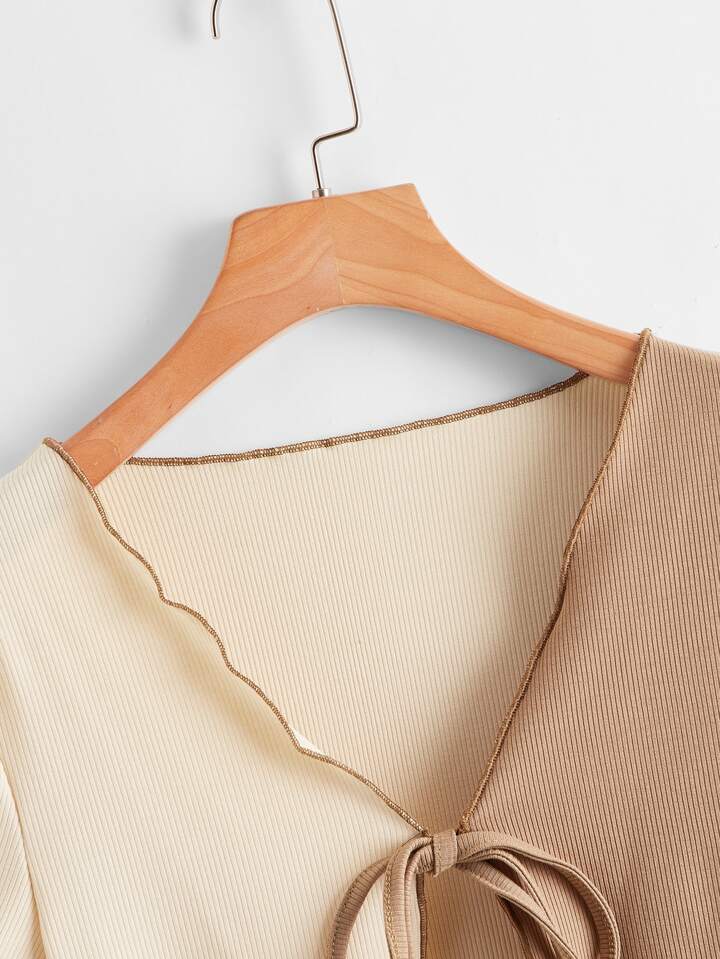 Zweifarbiges geripptes Top mit Band vorn