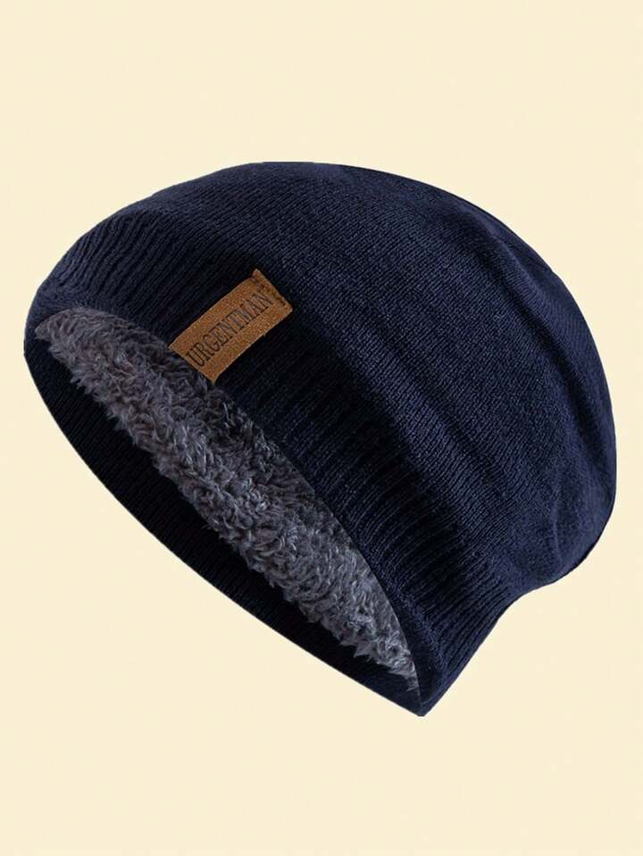 URGENTMAN Männer Mütze mit Buchstabe Flicken Dekor, Fleece Futter