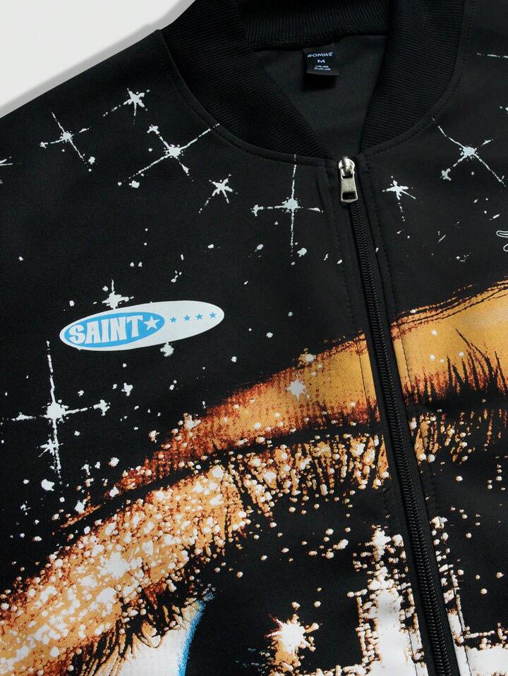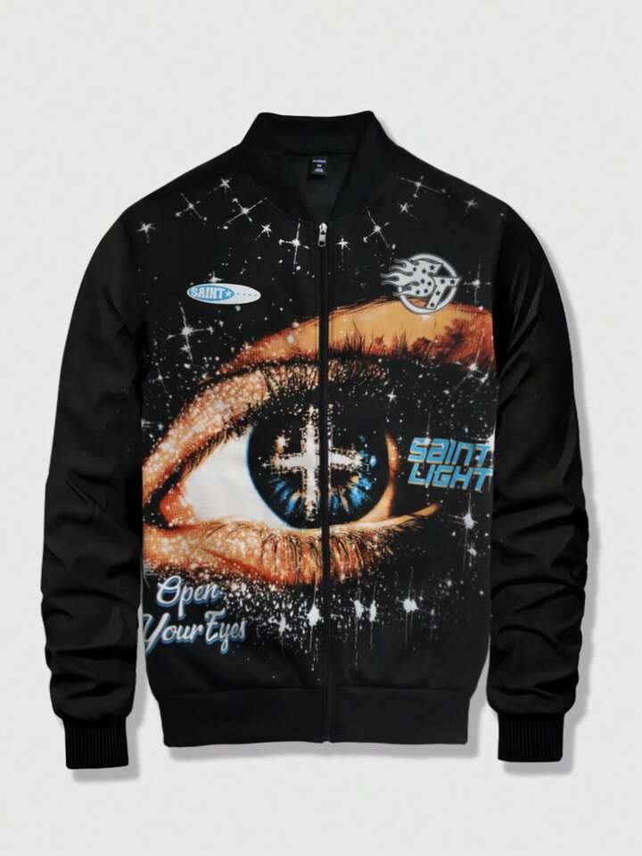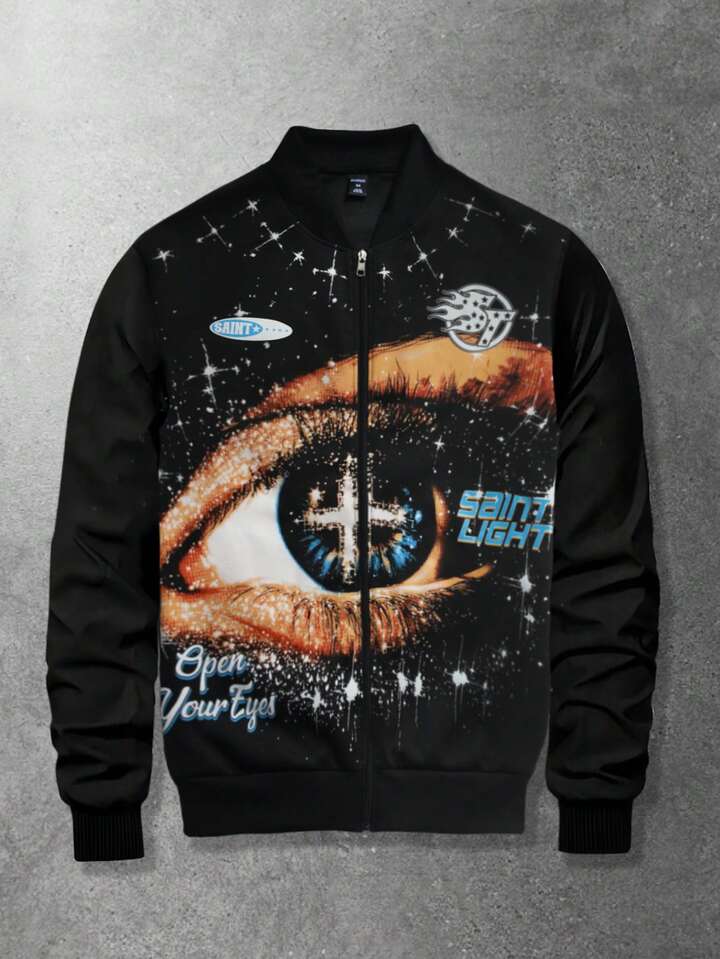 Unisex Lässig bedruckte Reißverschlussjacke, Straßenmode