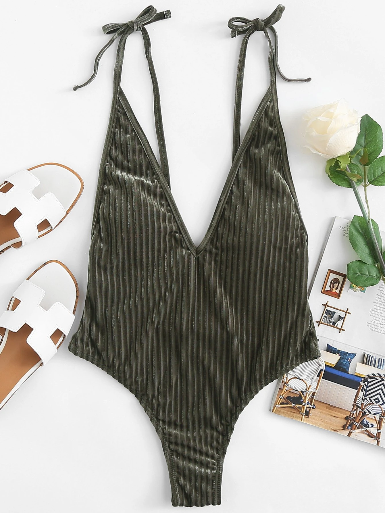 Badeanzug mit tiefem V-Ausschnitt