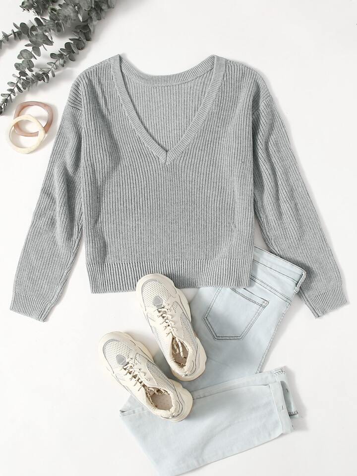 Pullover mit V-Ausschnitt hinten und sehr tief angesetzter Schulterpartie