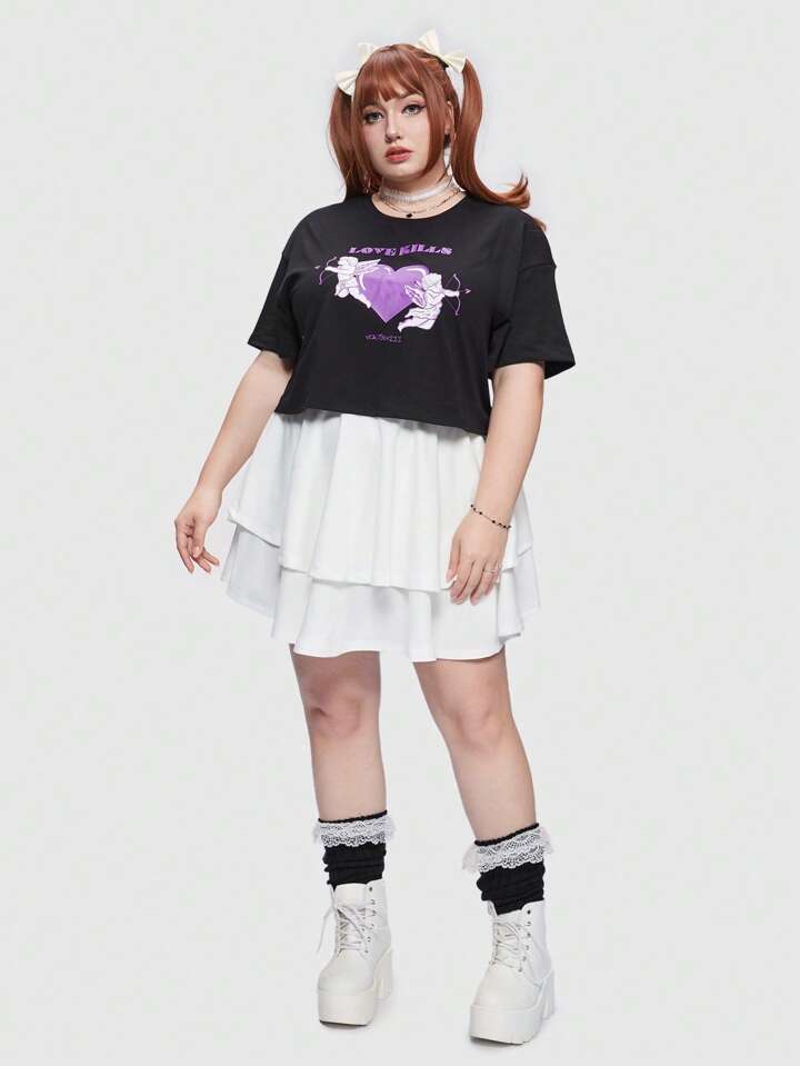 VERTIGO222 Drop Shoulder T-Shirt mit Herz & Amor Grafik,