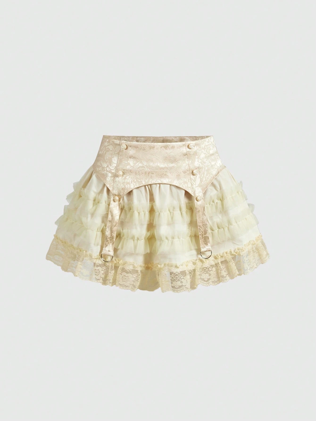 Valentinstag Gothic Jacquard Stoff Mesh Spitze Patchwork Kuchenschürze, Damen Minirock mit niedriger Taille
