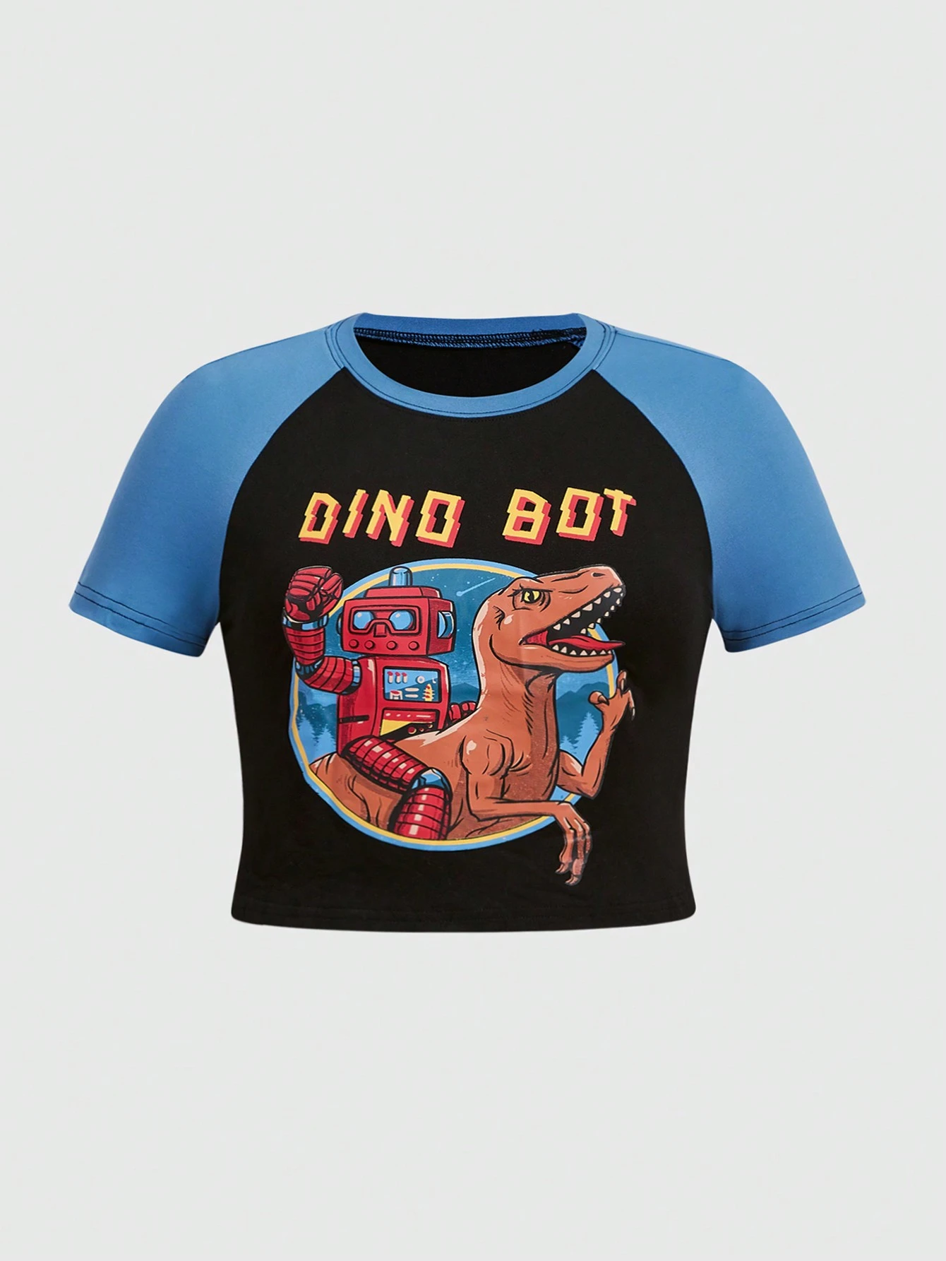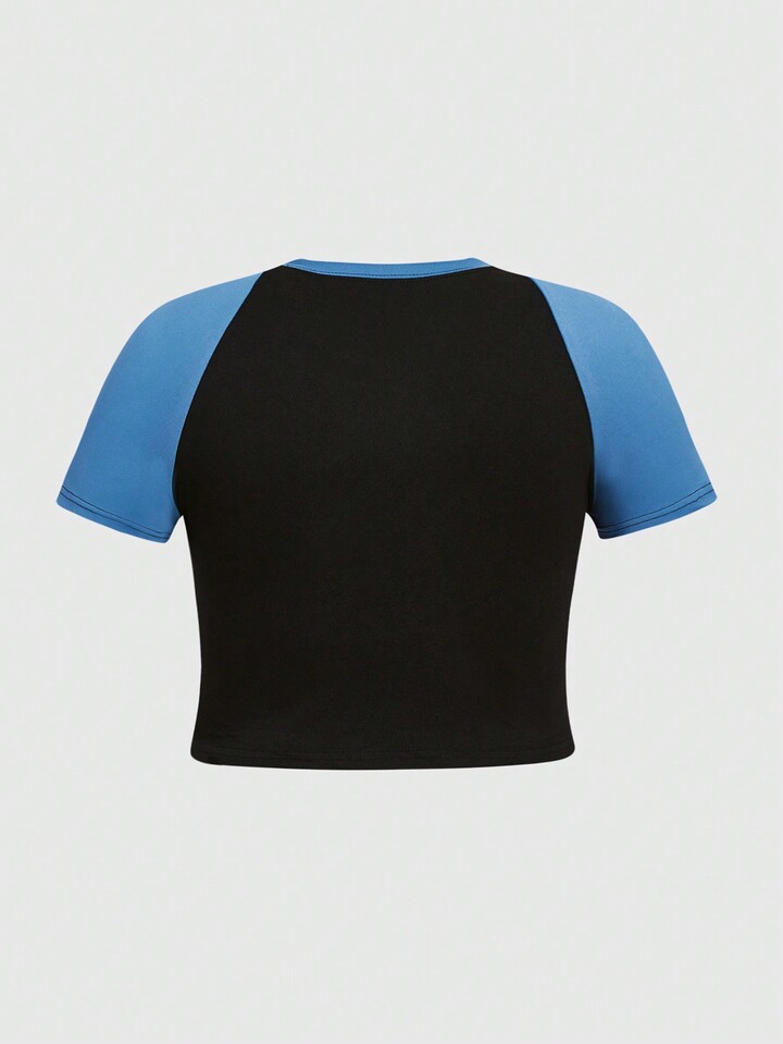 Vincenttrinidadart Große Größen Raglanärmel T-Shirt mit Cartoon- und Buchstabengrafik