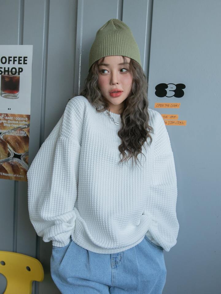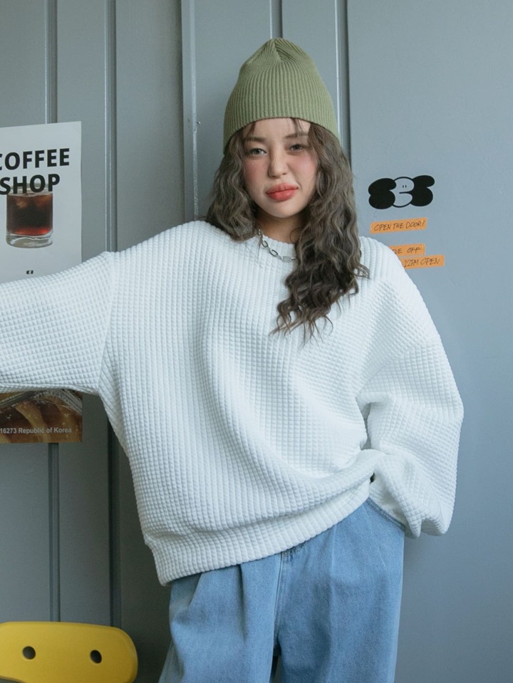 Sweatshirt mit Waffelstrick sehr tief angesetzter Schulterpartie