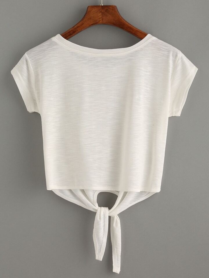 Vorn gebundenes Crop T-Shirt in weiß lässig