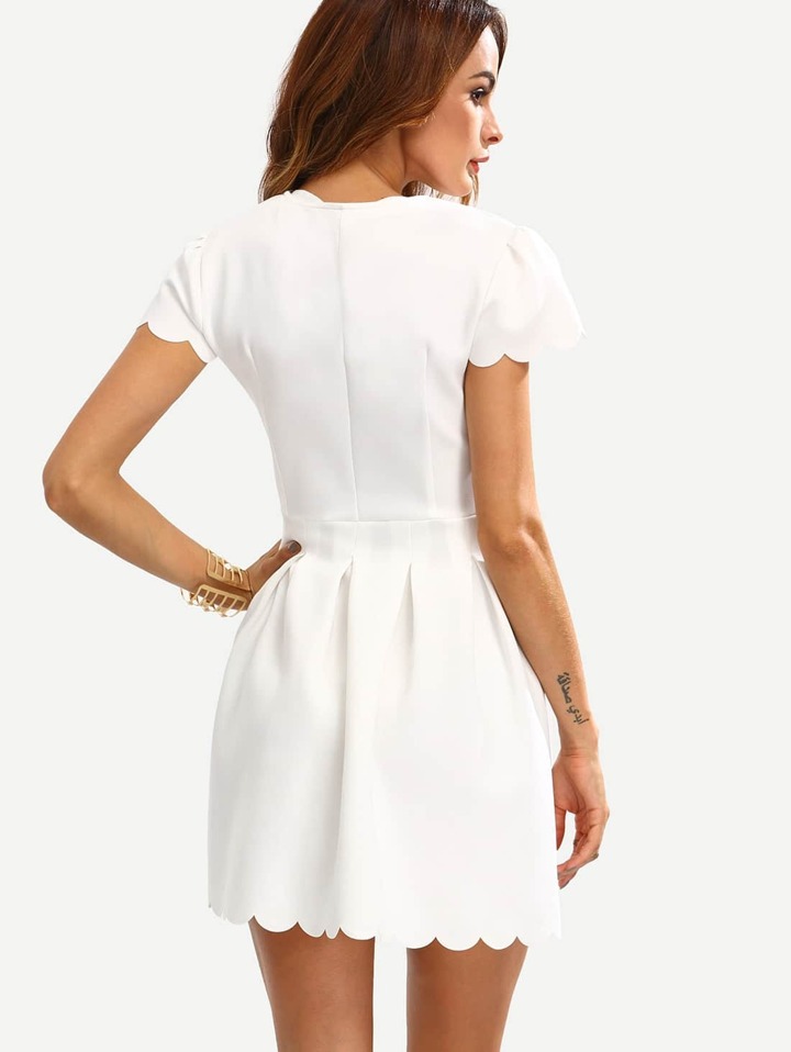 A-Linie Kleid mit rundgezacktem Saum und geschlitztem Ausschnitt