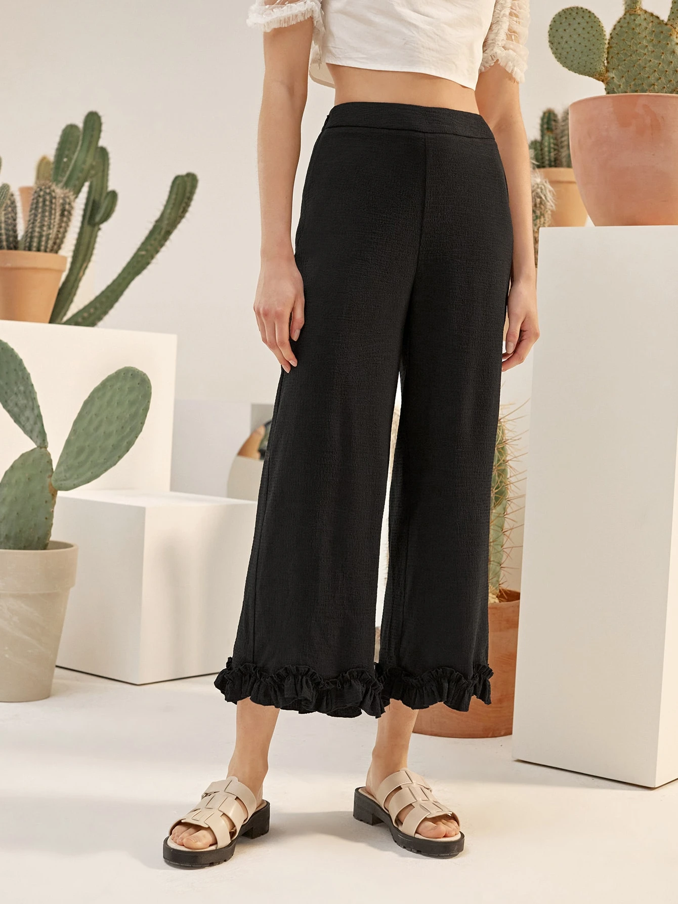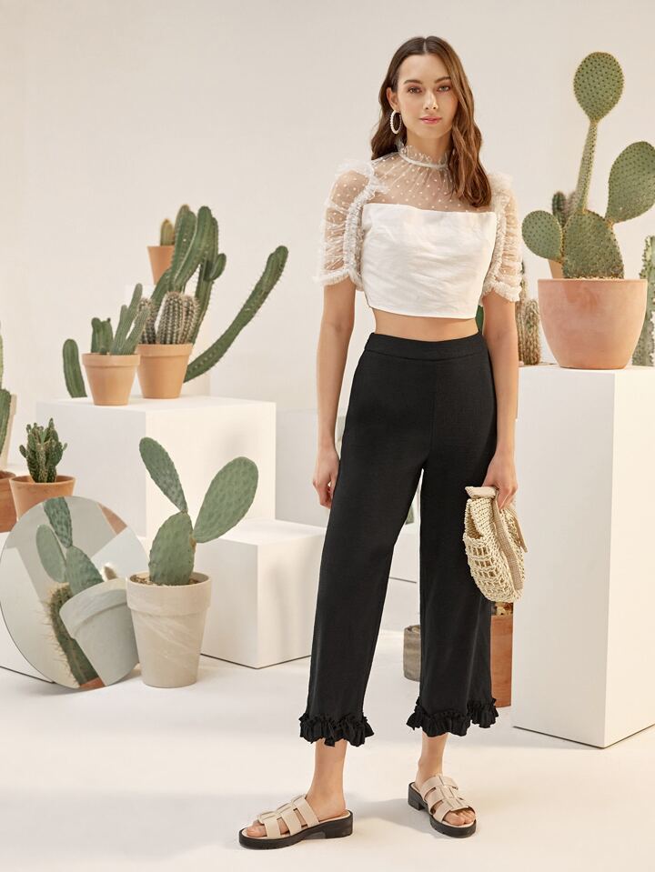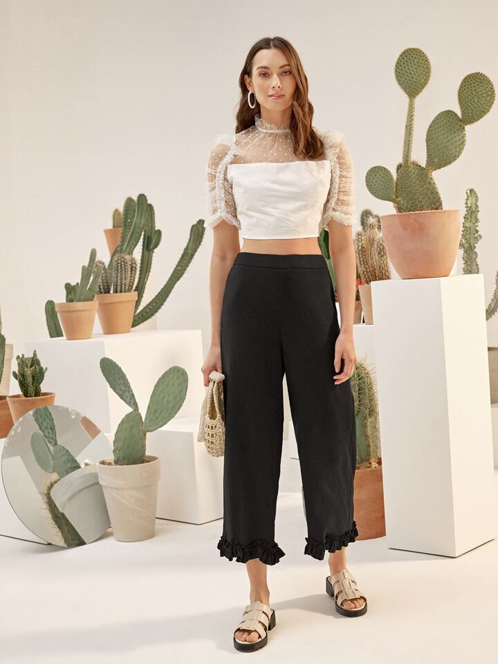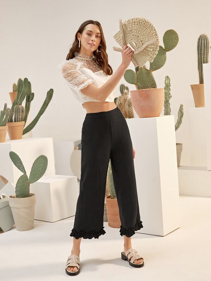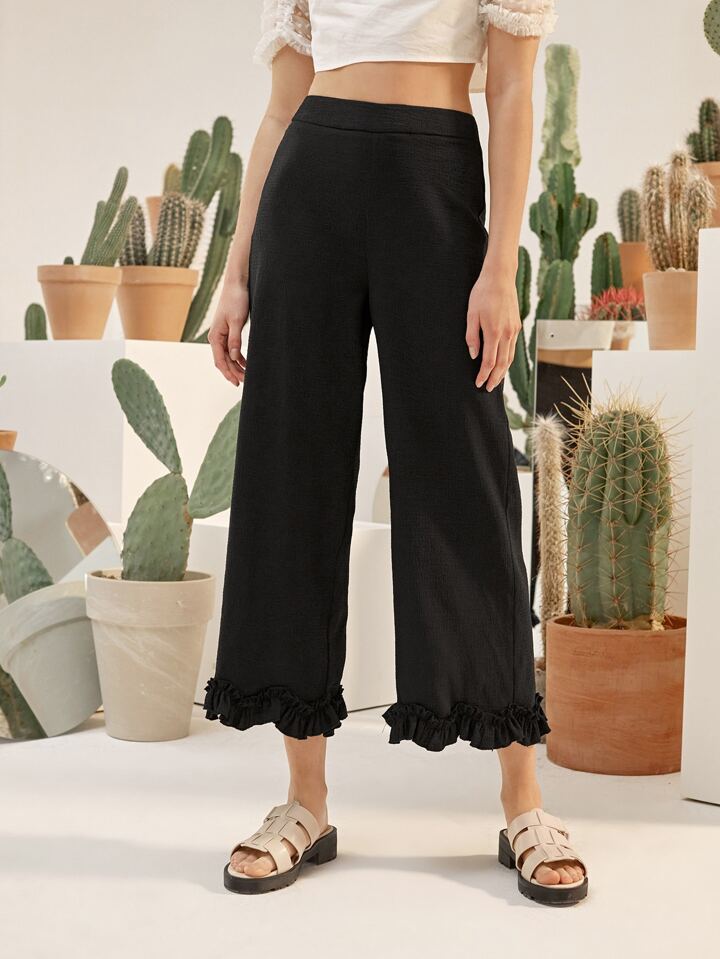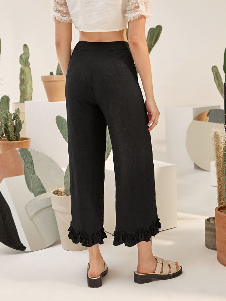 Hose mit weitem Beinschnitt und Rüschenbesatz