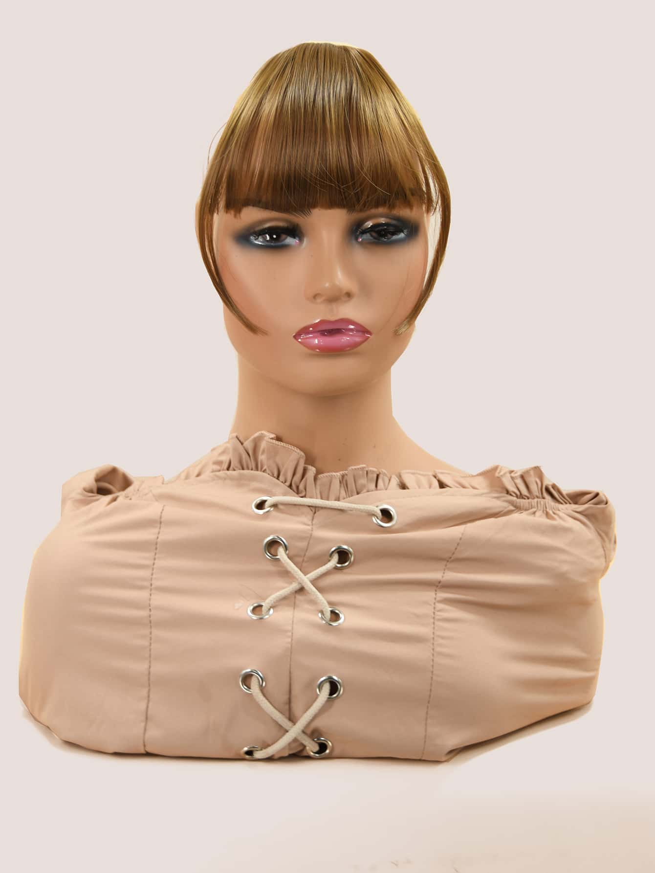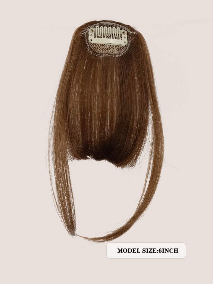 Mit Koteletten, Pony, brauner flacher, ordentlicher, luftiger Pony, synthetische 6-Zoll-Haarverlängerungen für Frauen