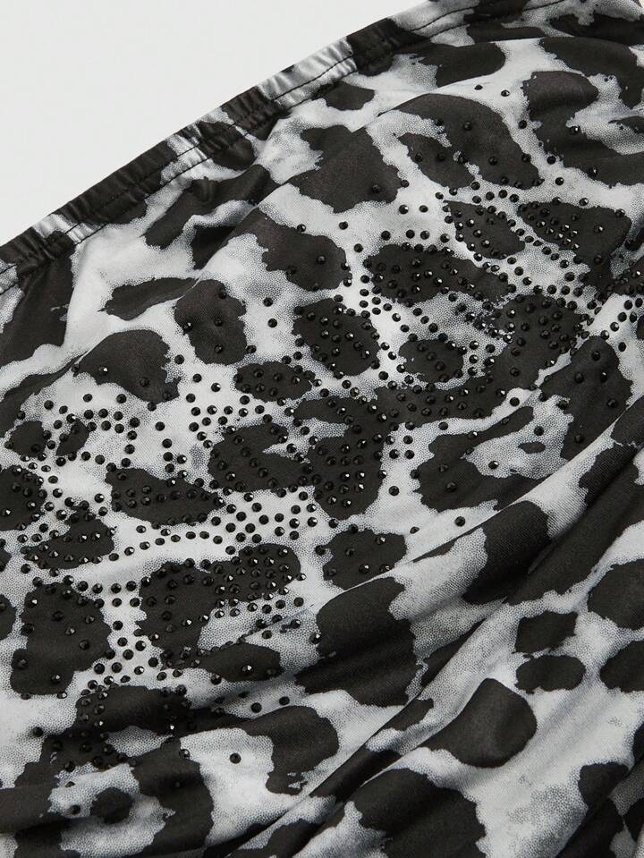 Damen 2 Stücke Set mit strass-besetztem Leoparden-Muster, trägerloses Neckholder Top mit Tunnelzug und Hose Sexy Outfit