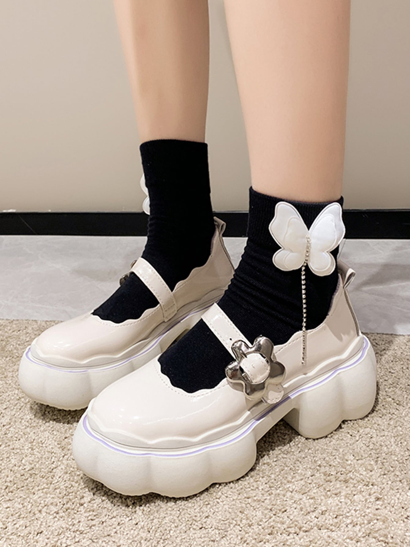 Damenschuhe mit runder Zehenpartie und Schnallendekor, adrette Outdoor-Mary-Jane-Schuhe