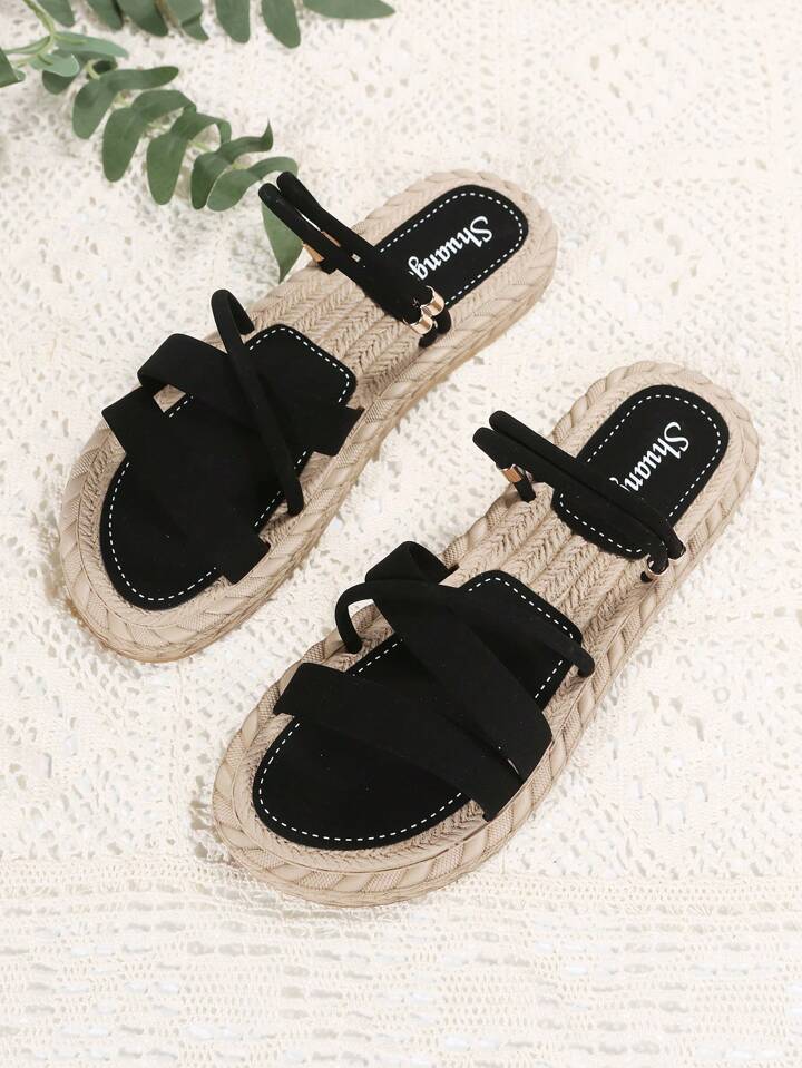 Damen Sandalen mit Criss Cross Riemen aus Wildlederimitat, vielseitig einsetzbar, minimalistische flache Outdoor Sandalen