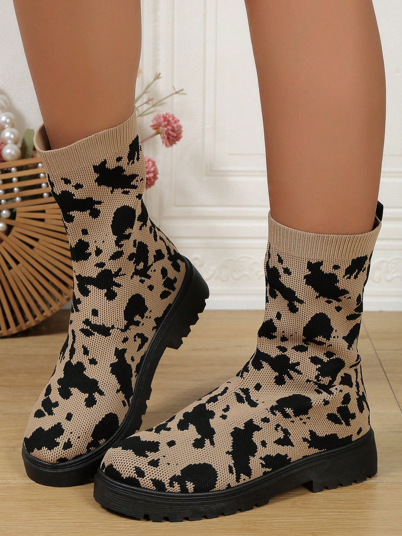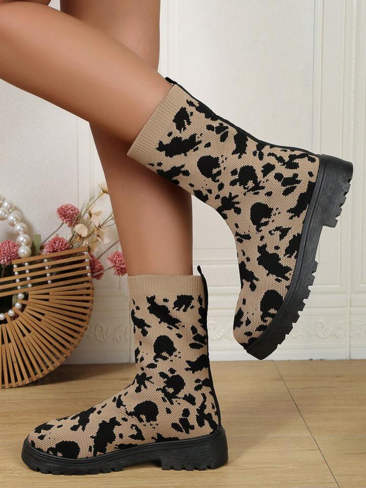 Frauen Grafik Muster, Slip On Socken-Stiefel, Fashion Outdoor Stiefel