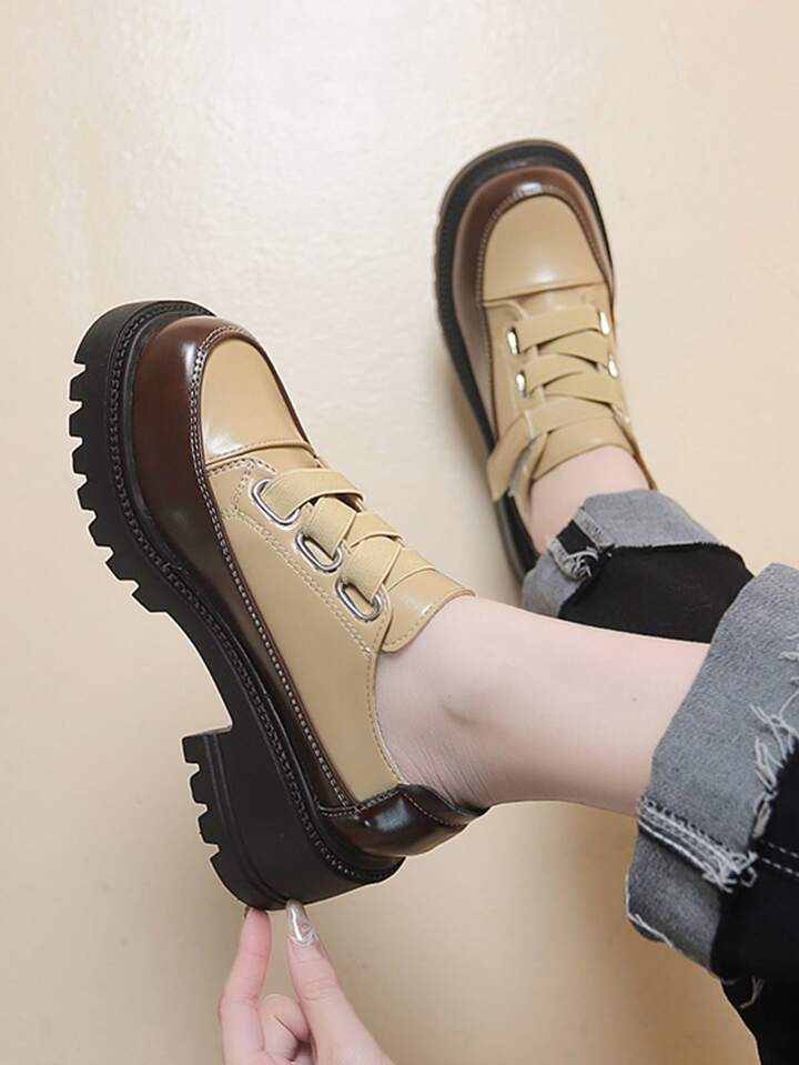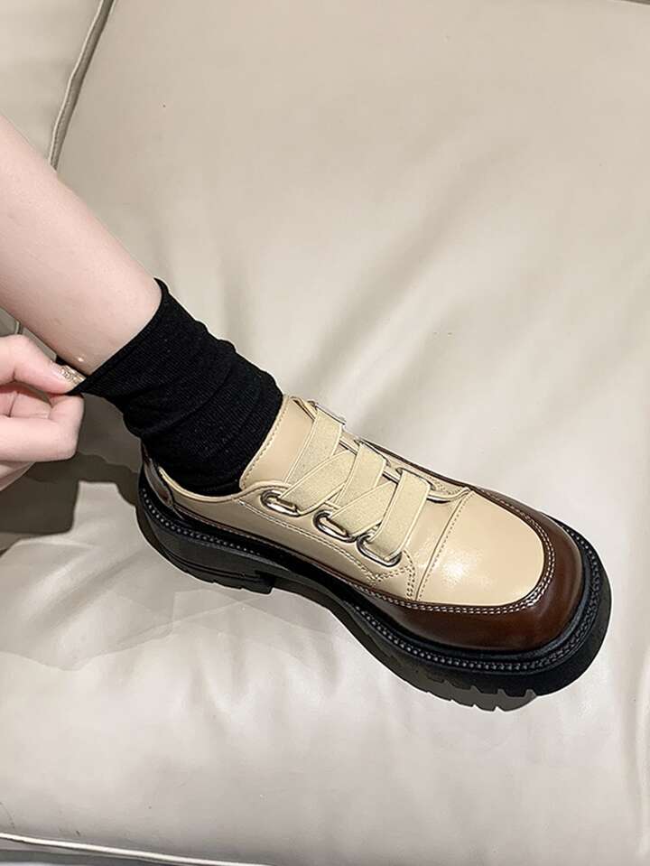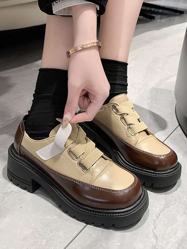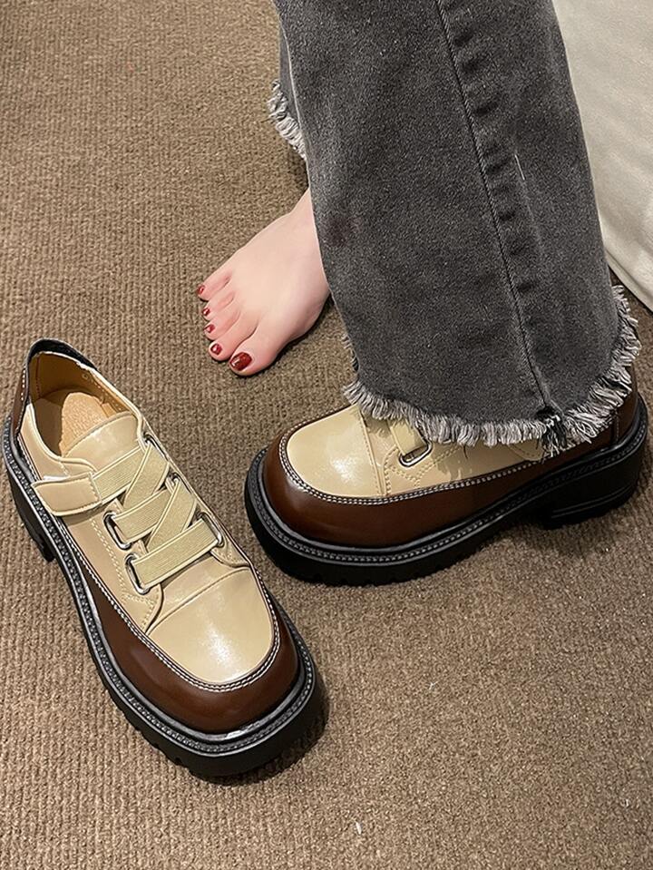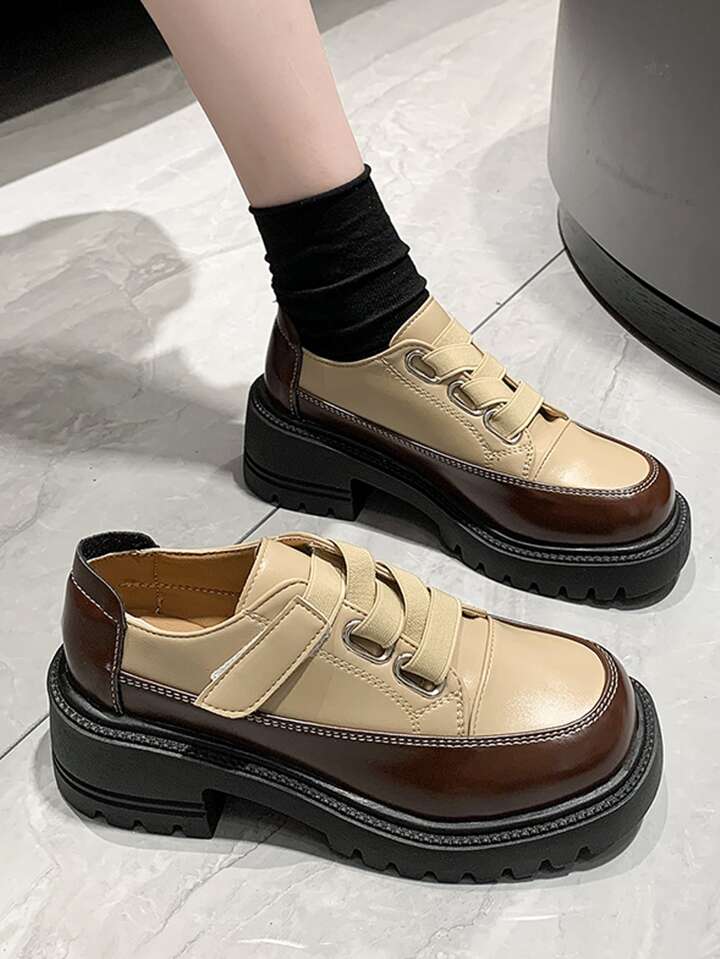 Zweifarbige Plateauschuhe mit Klettverschluss für Damen, modische Outdoor Schuhe mit Keilabsatz