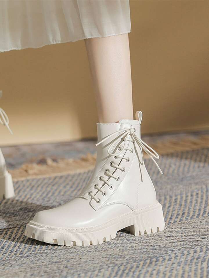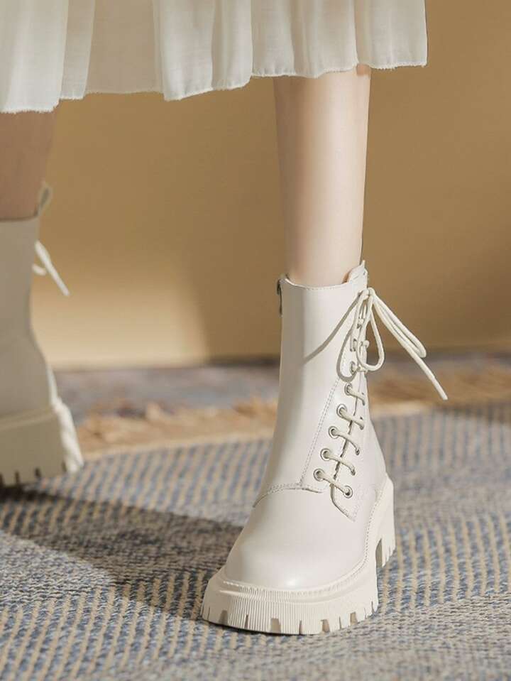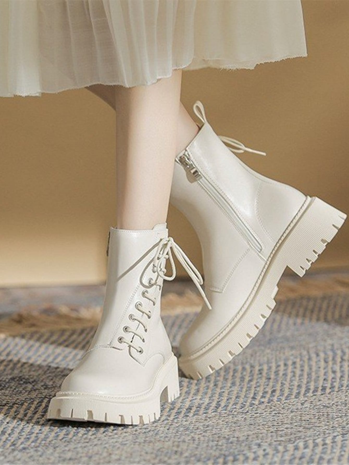 Damen Schnürstiefel mit Reißverschluss an der Seite, elegante Kampfstiefel für den Außenbereich