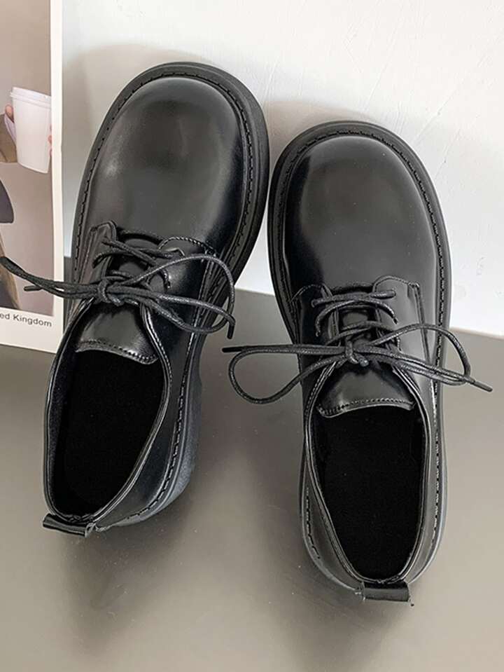 Minimalistische Schnürschuhe für Damen, Preppy schwarze Oxford-Schuhe