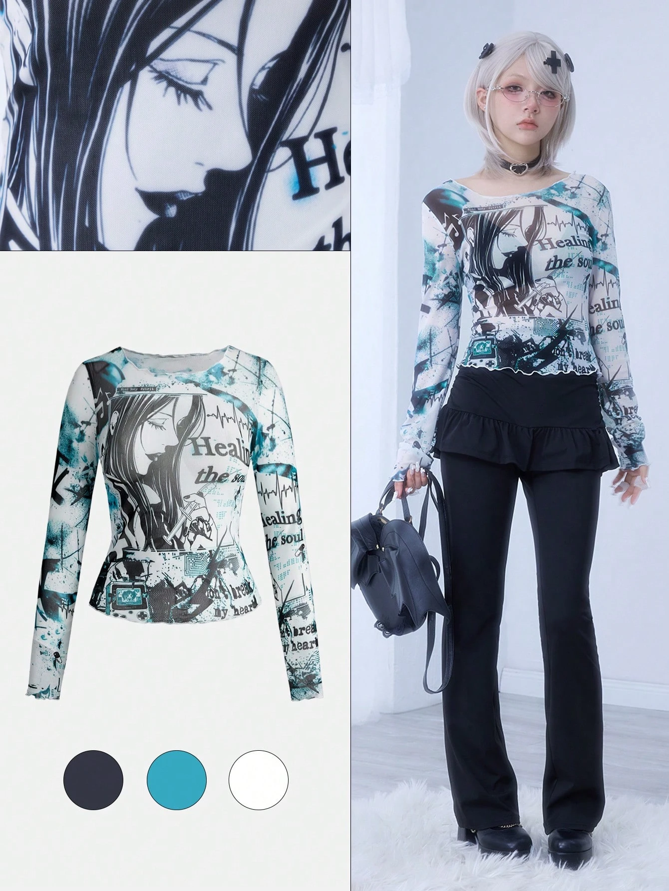 Damen Anime-inspirierte medizinisch-thematische sexy transparente Vintage Batik-Muster Bluse