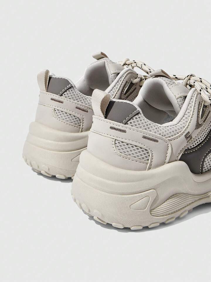 Damen beige Schnürsneaker mit dicker Sohle, atmungsaktive & komfortable Chunky Sneaker, Laufschuhe Trainer