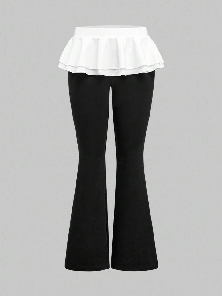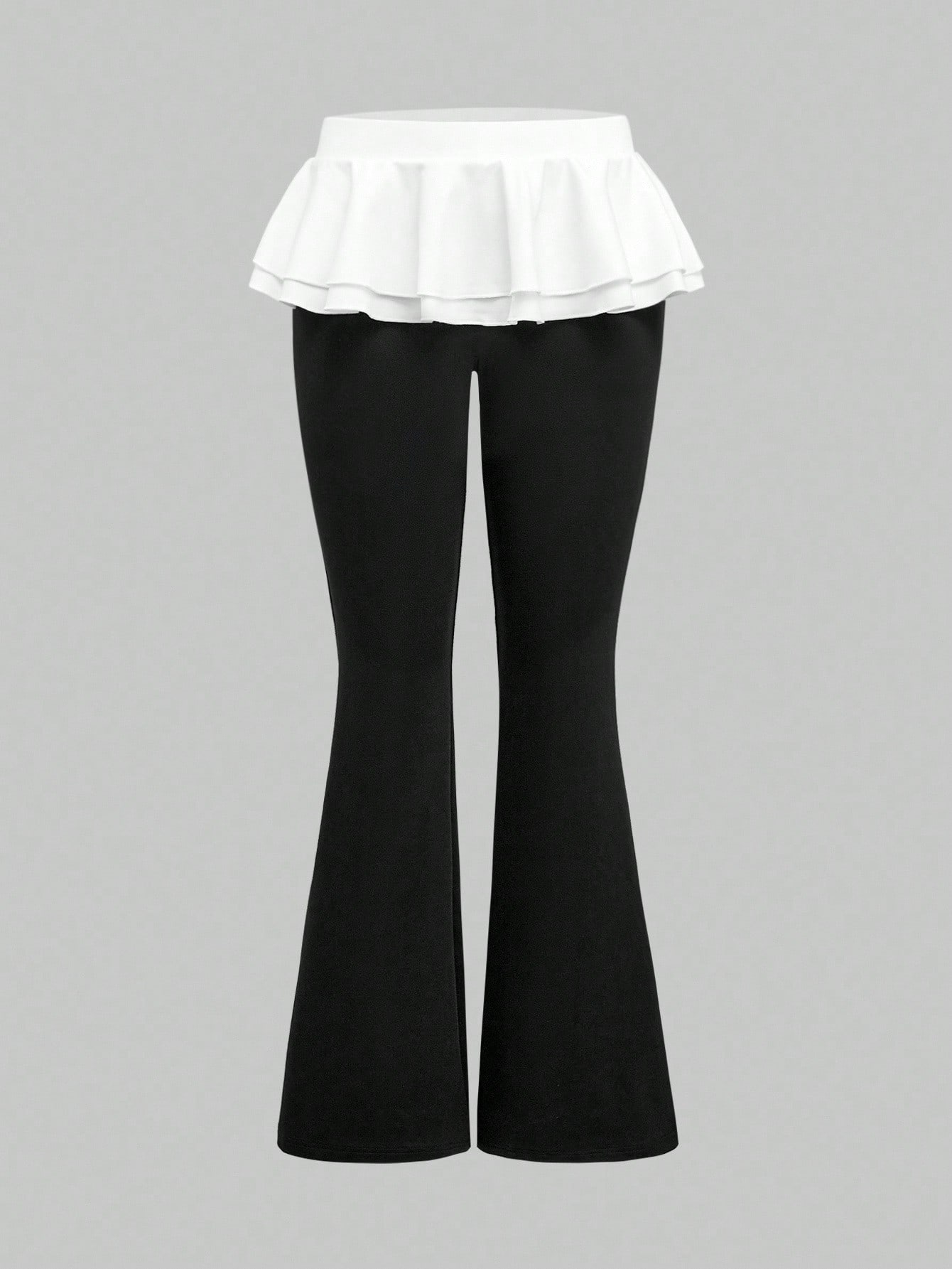 Damen süße Hose mit geraffeltem Saum, gespleißter Taille und schmal zulaufendem Bein