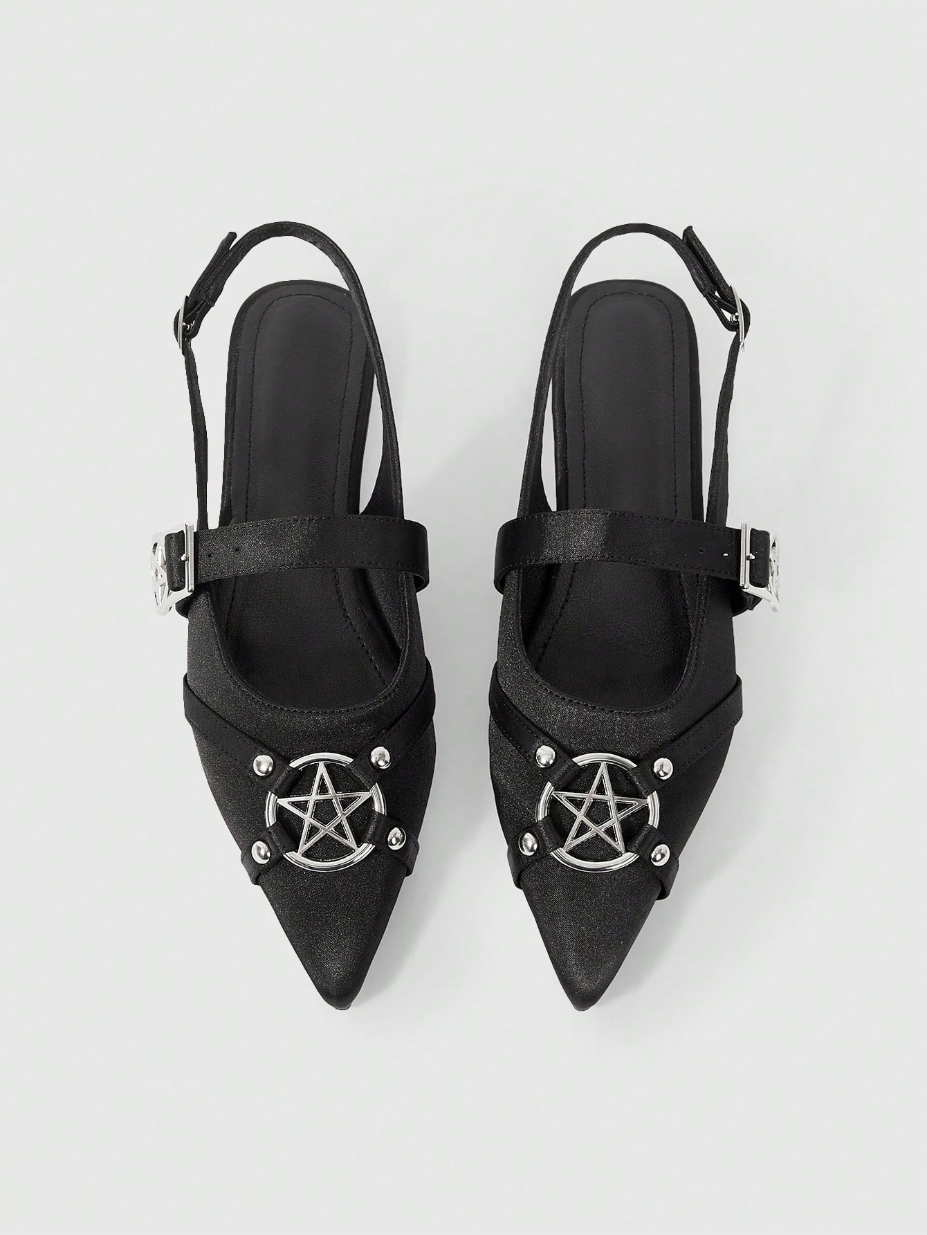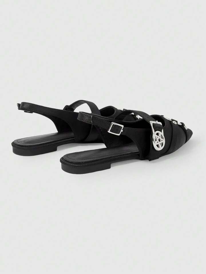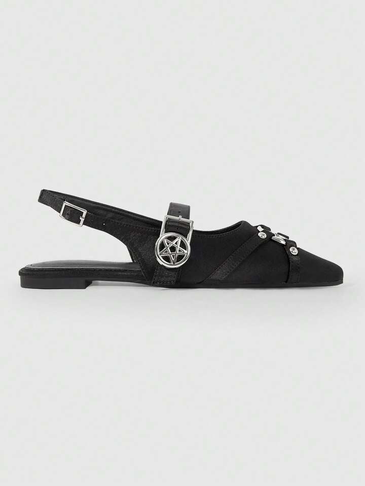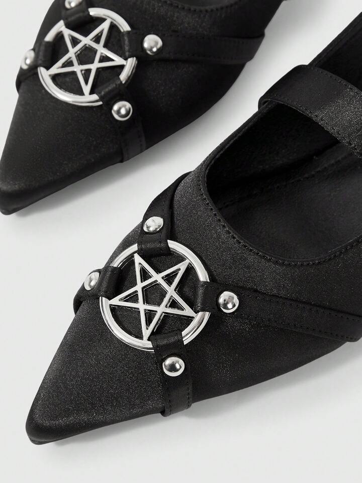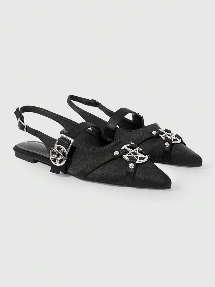 Damen elegante Mode Lässig Spitzschuh Ballerinas, Gothic Stil Seiden Flache Schuhe geeignet für Party, Alltag und Abendanlässe, Halloween
