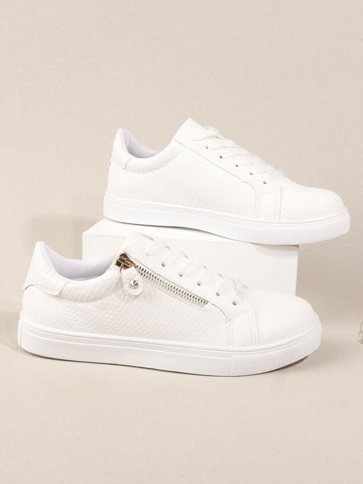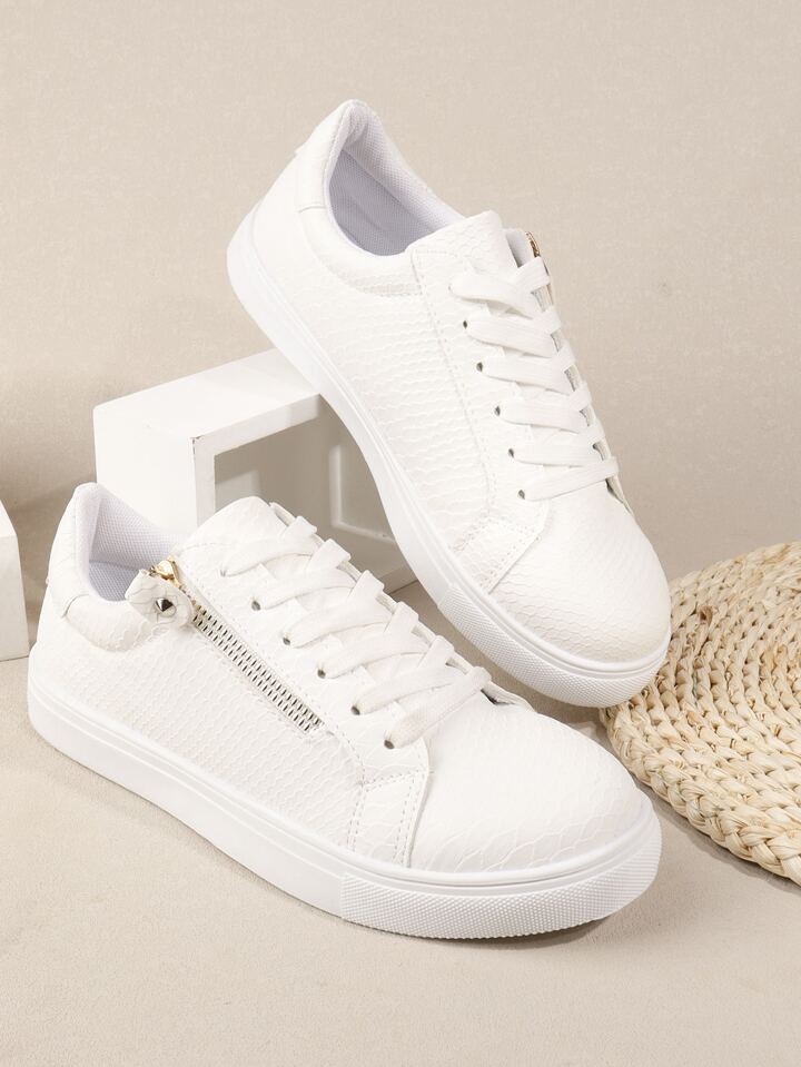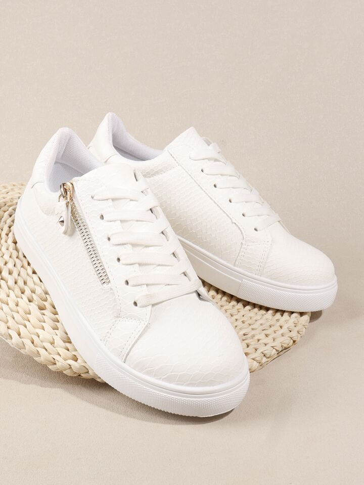 Modische, lässige, weiche und bequeme Damen-Sneaker mit klassischem Schlangenmuster aus PU mit runder Zehenpartie, Schnürung und seitlichem Einsatz