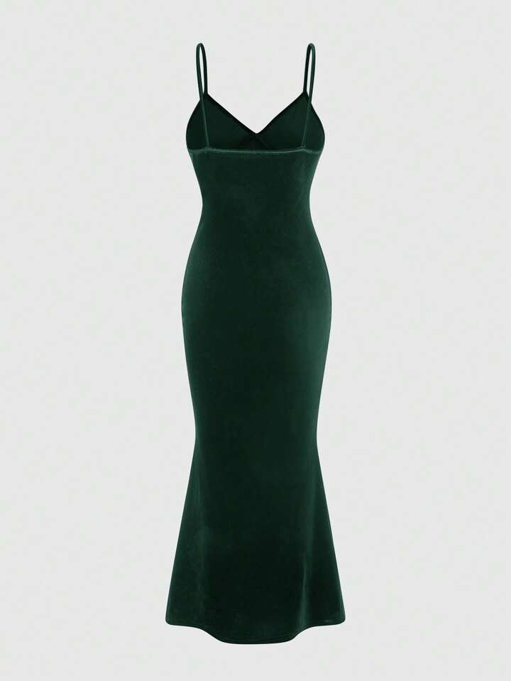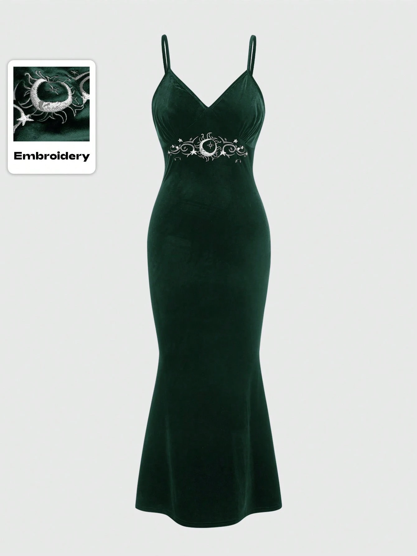 Damen tailliertes Meerjungfrau-Saum Taille besticktes Hippie-Samt-Kleid