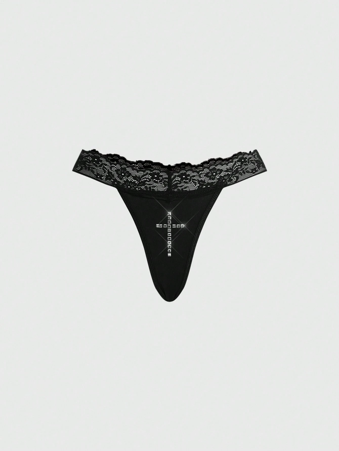Damen Gothic Kreuz Strass Spitzen String