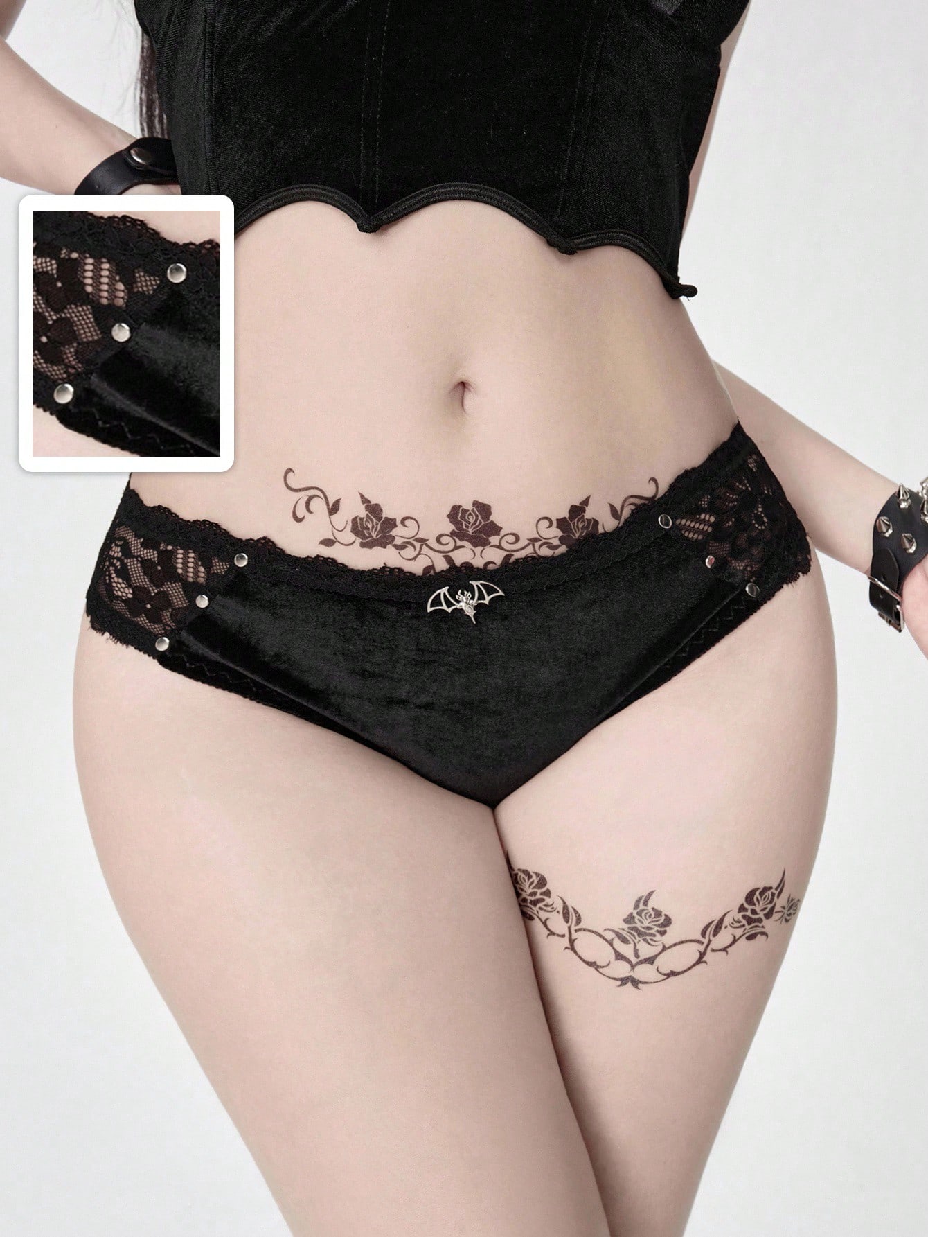 Damen Gothic Samt Nieten Fledermaus Anhänger Dreieck Höschen