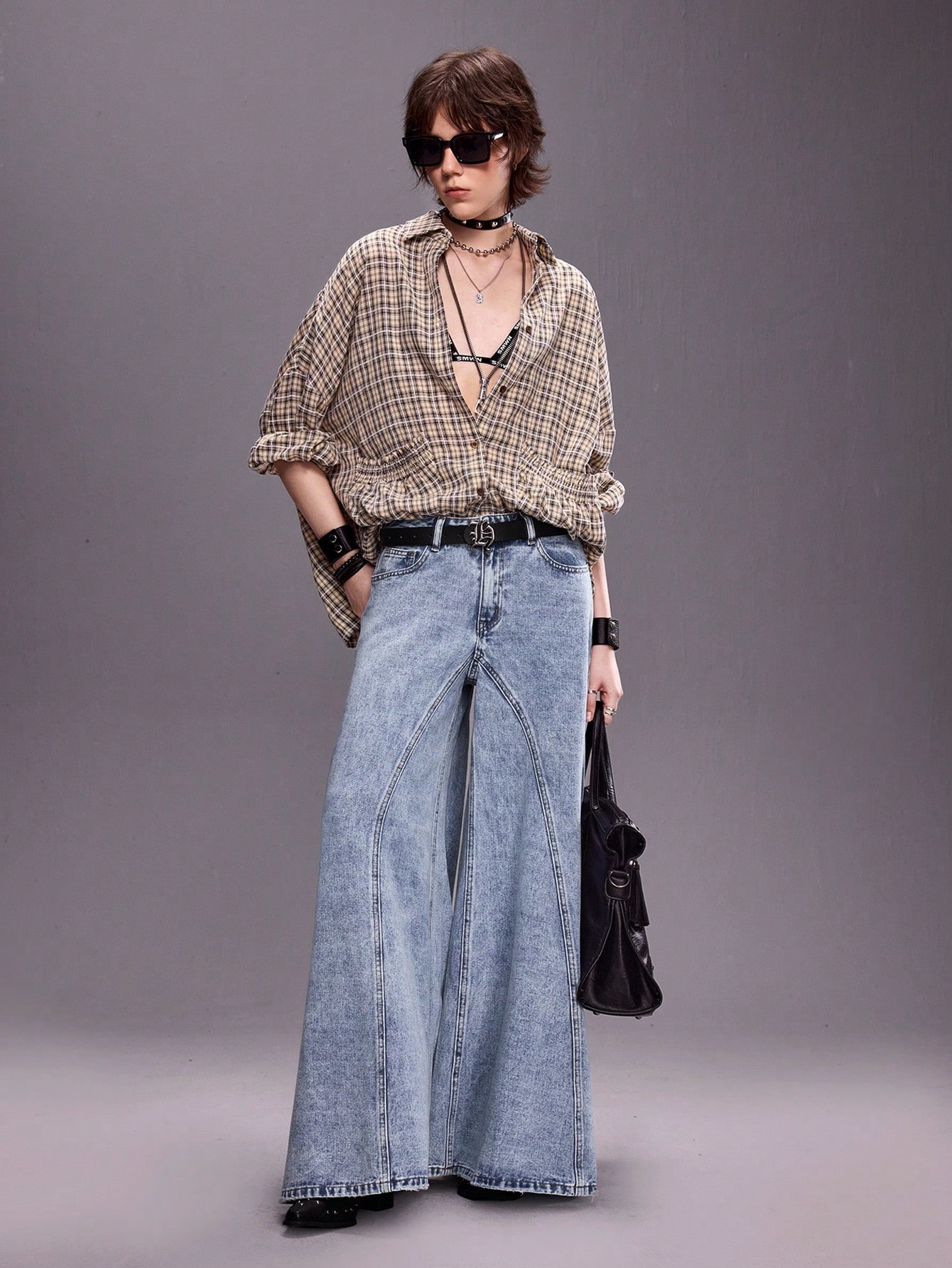Damen Jeans mit niedriger Taille, Patchwork und extra weitem Bein