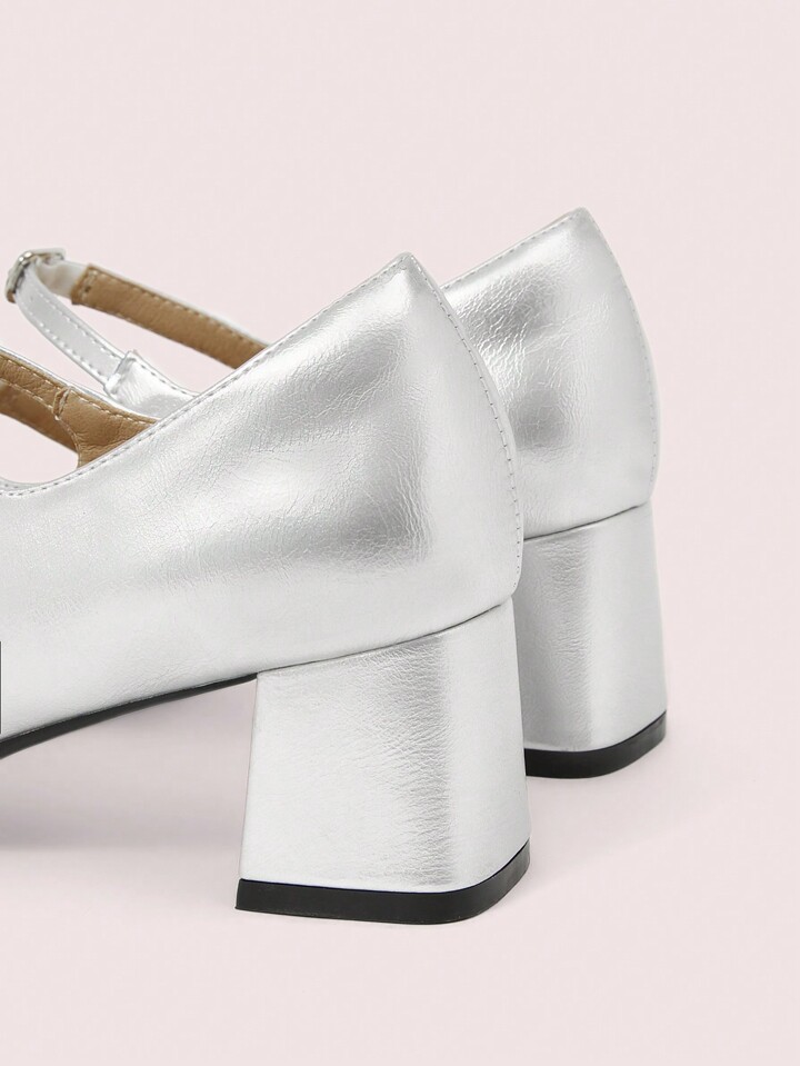 Damen neue französische Mary Jane Plateau-Pumps, silberner Knöchelriemen Lässig Absätze für Arbeit und täglichen Gebrauch Valentinstag