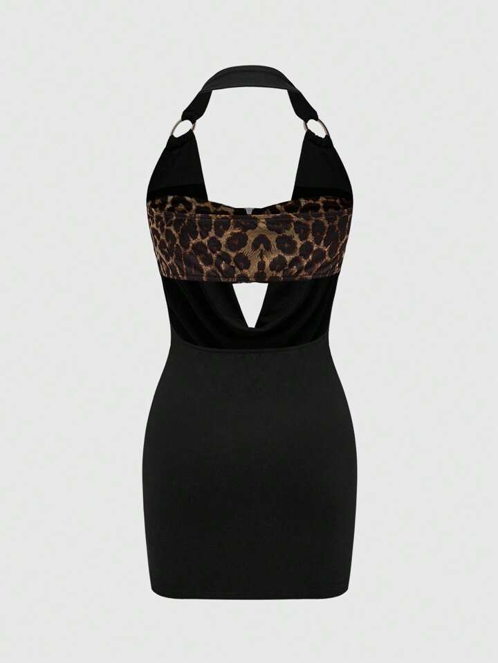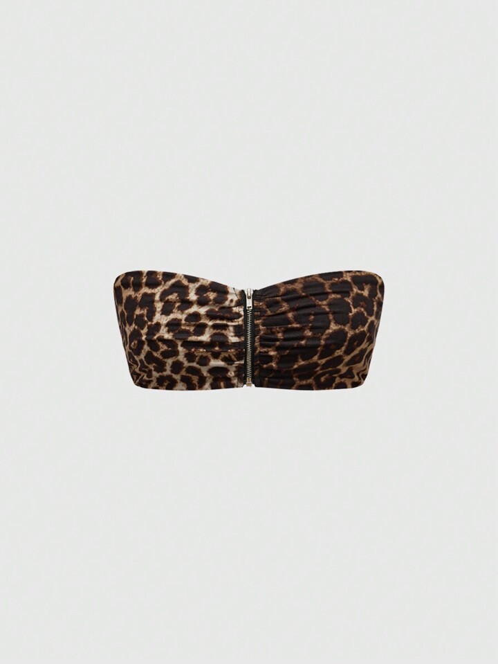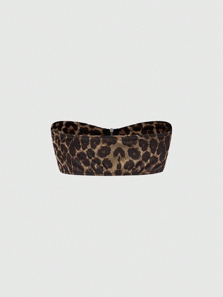 Kawaii Damen sexy Crop Top mit Trägerhals und Rock Matching-Set mit Y2K Leopard Muster Design