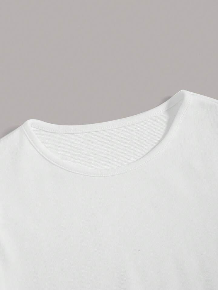 Damen einfarbiges Rundhals Langarm Slim Lässig T-Shirt