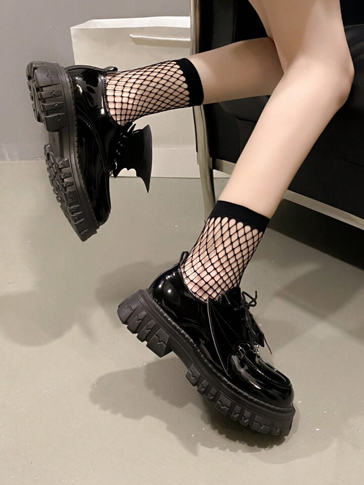 Frauen dicke Sohle Schuhe, Lackleder, abnehmbare Fledermausflügel Metallverzierung, schnürbar, personalisierte Halloween Schuhe