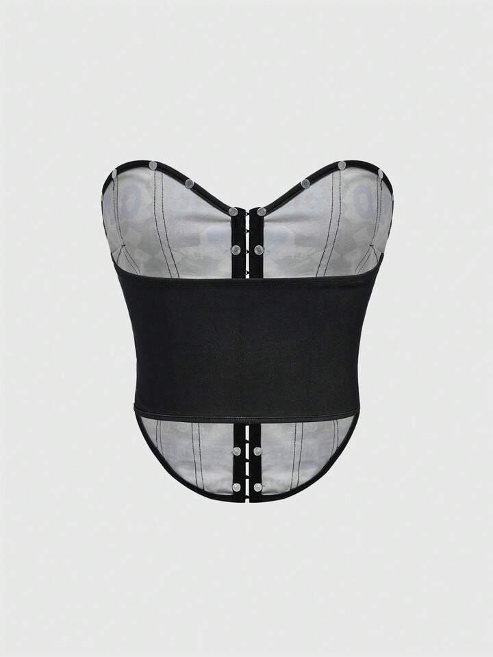 Damen Y2K Buchstaben-Muster Crop Top mit Knopfleiste vorne