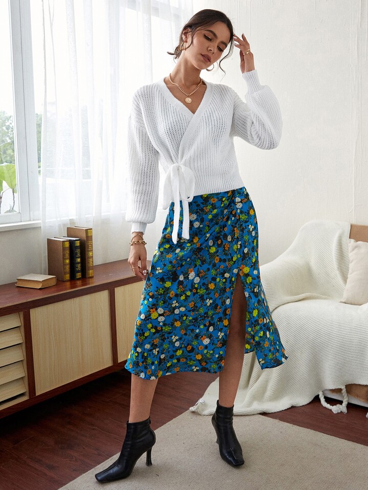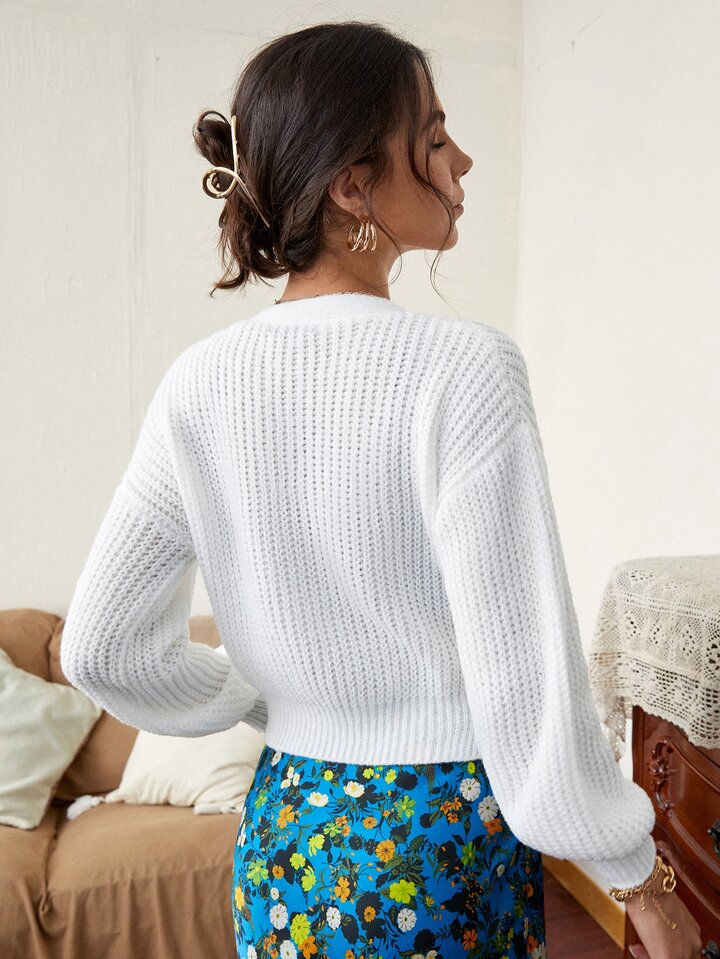 Cardigan mit Wickel, Knoten und Bischofärmeln