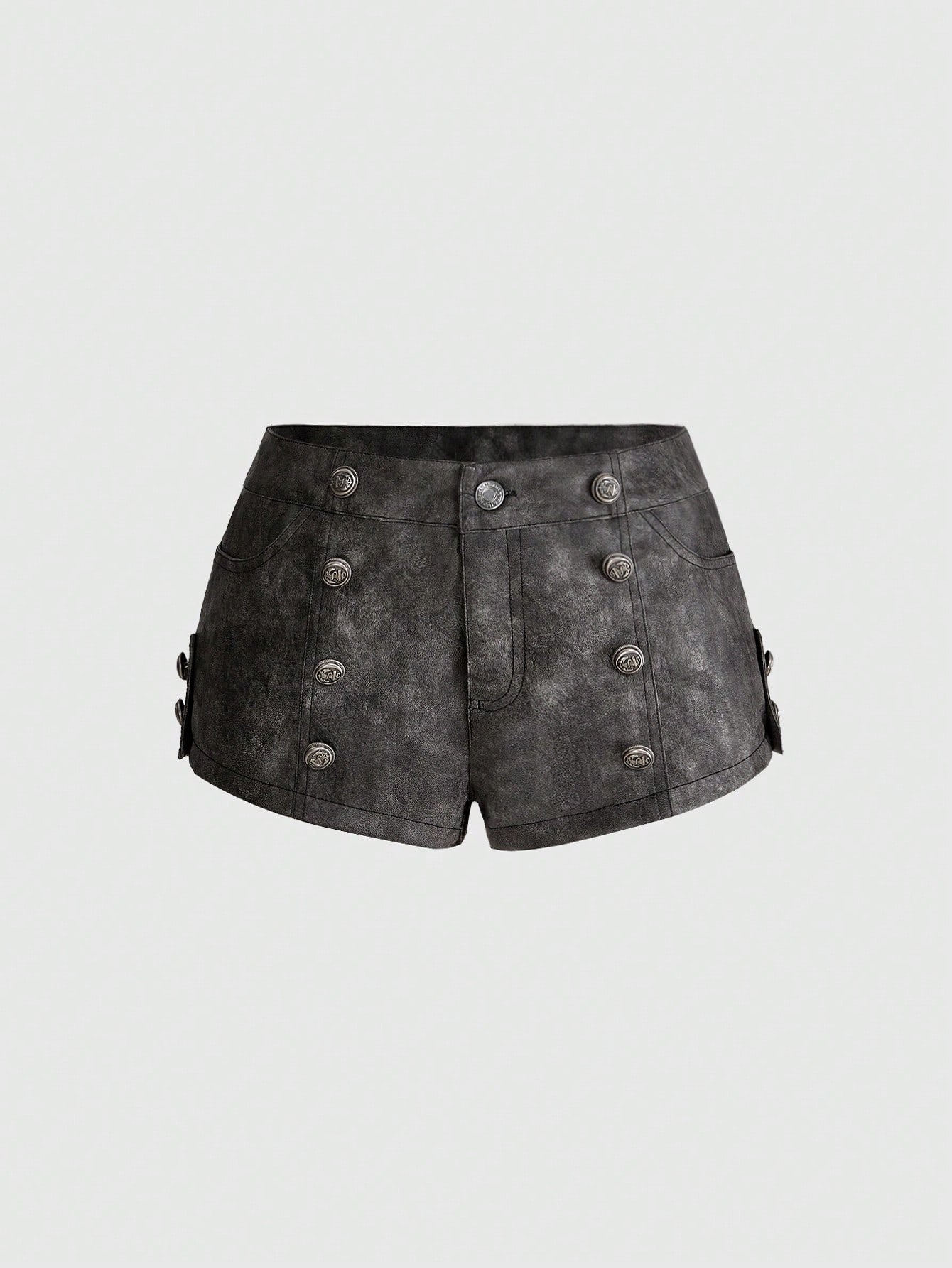 Y2K Baddie Musik Festival Outfit Rave Shorts, vielseitige britische Stil PU Mini Hotpants