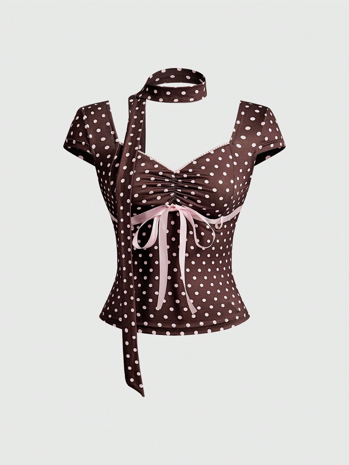 Y2K Polka Dot Schleife Fliege Frauen T-Shirt